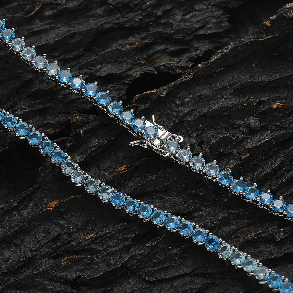 ICE BLING 三爪渐变海蓝色4MM锆石排钻网球链项链 男士小众设计潮