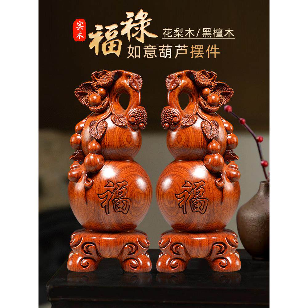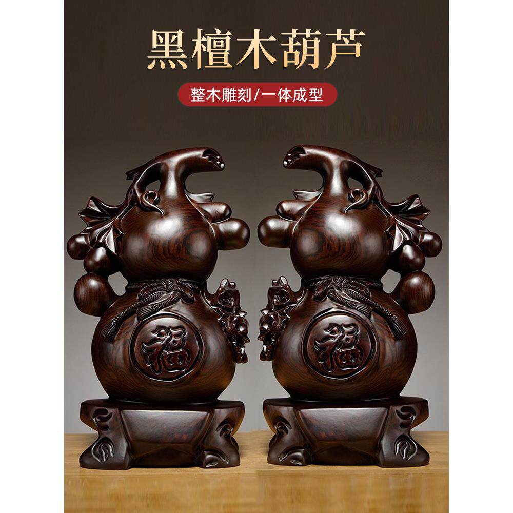 黑檀木葫芦摆件天然实木雕刻招财客厅玄关办公室装饰乔迁开业礼物