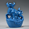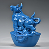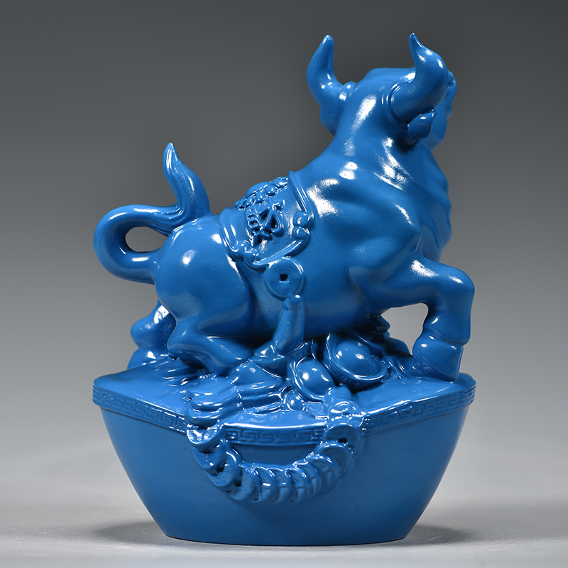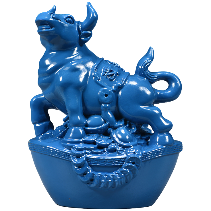 蓝色木雕牛摆件十二生肖动物牛实木家居客厅电视柜装饰红木工艺品