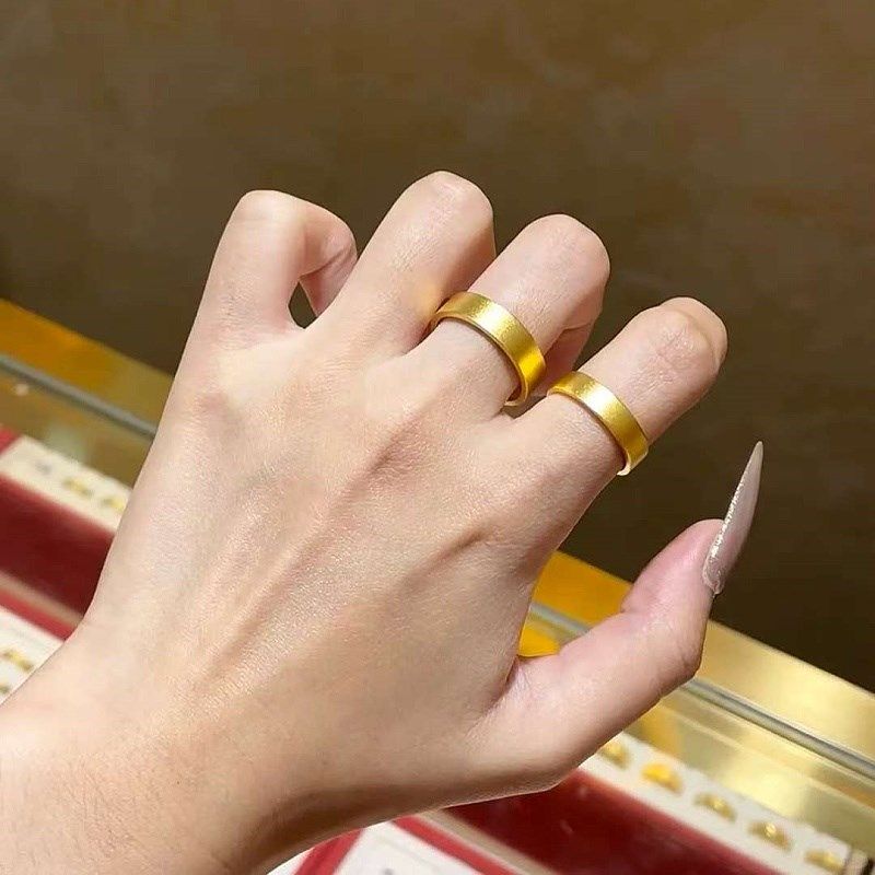 古法金包银平面素圈戒指女平底指环时尚情侣对戒尾戒食Y指戒婚戒