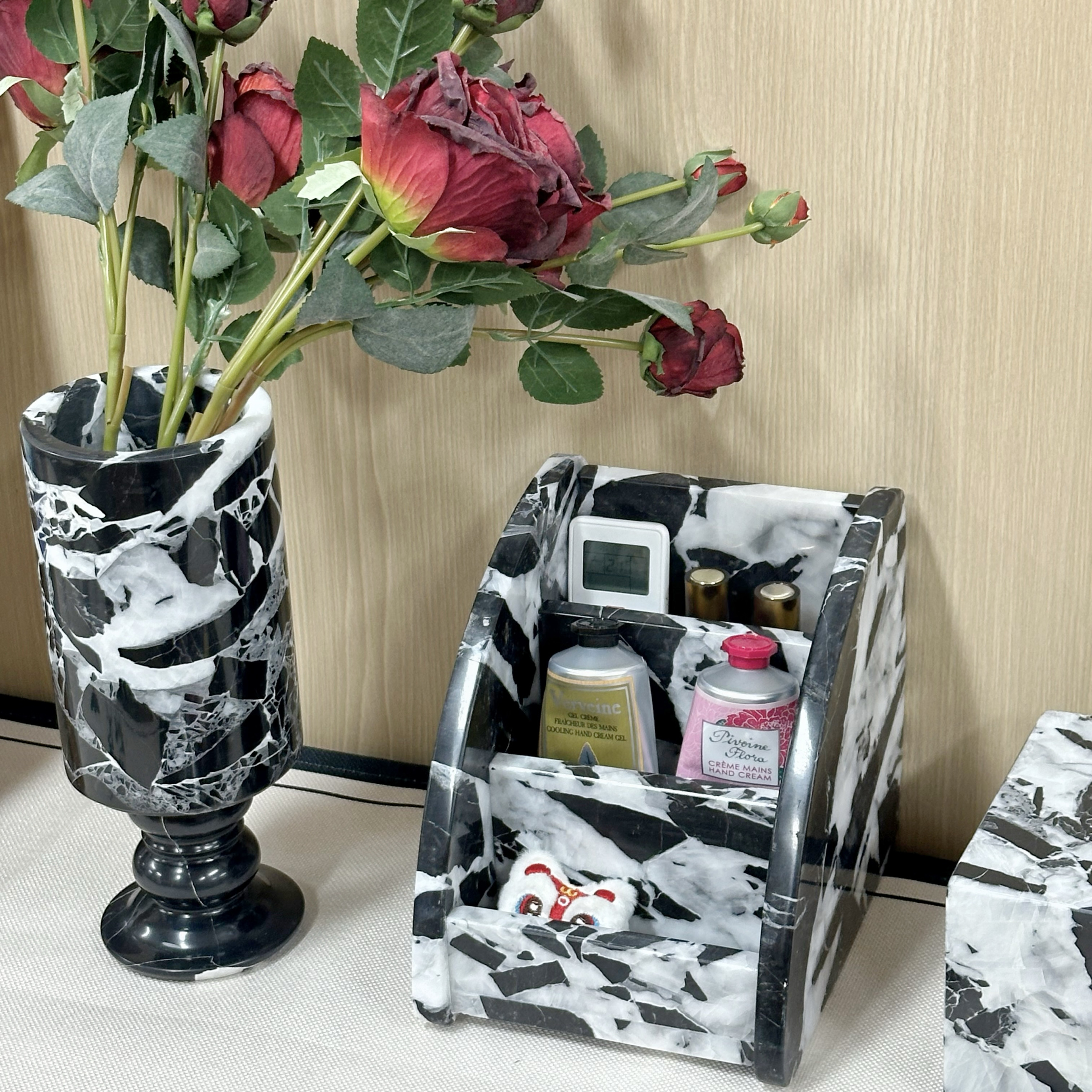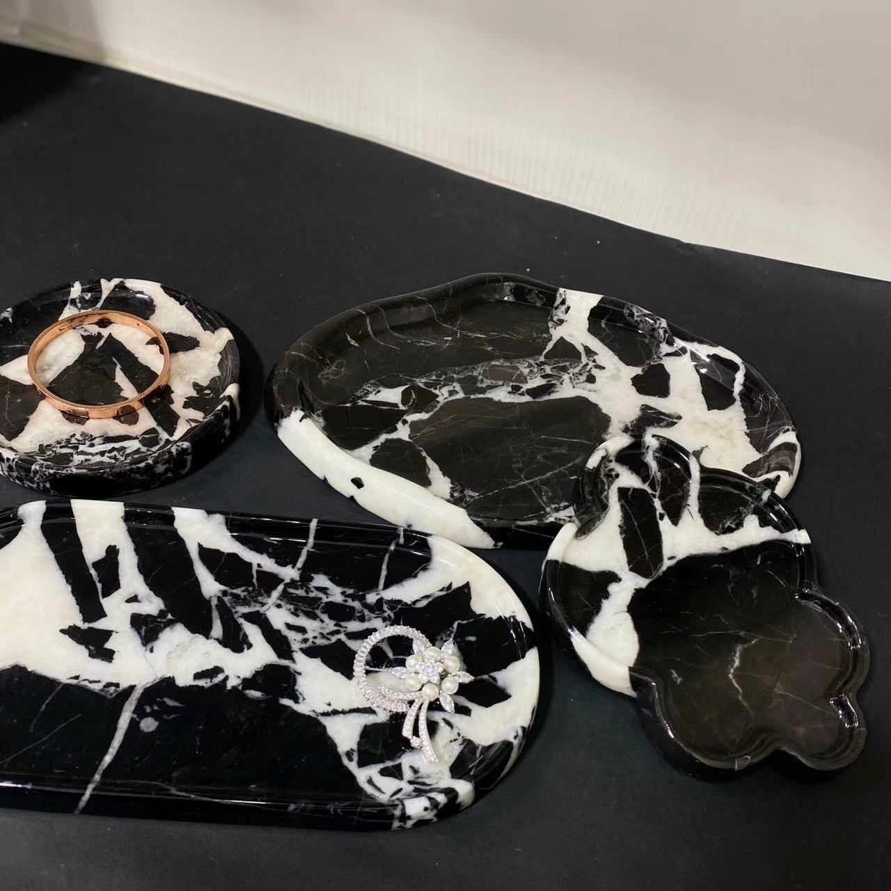 大理石托盘摆件轻奢宝格丽黑化妆品首饰收纳托盘卫生间收纳托盘