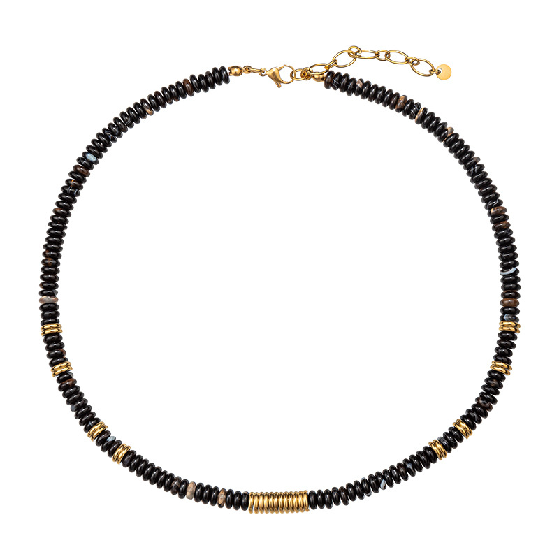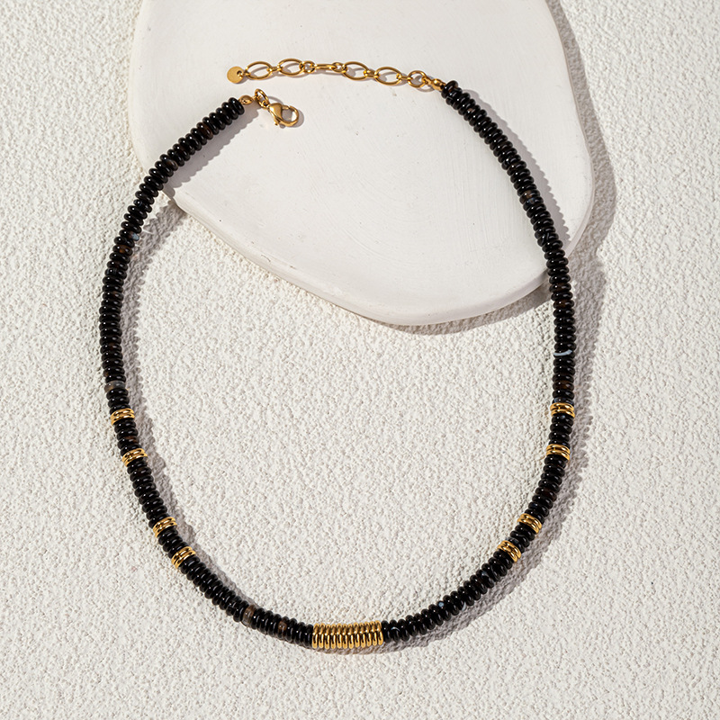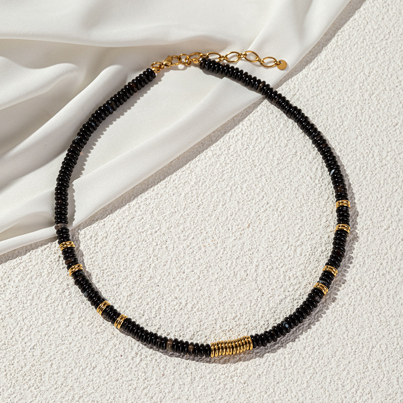 厂家批发法式复古黑玛瑙项链女个性高级感天然石串珠锁骨链毛衣