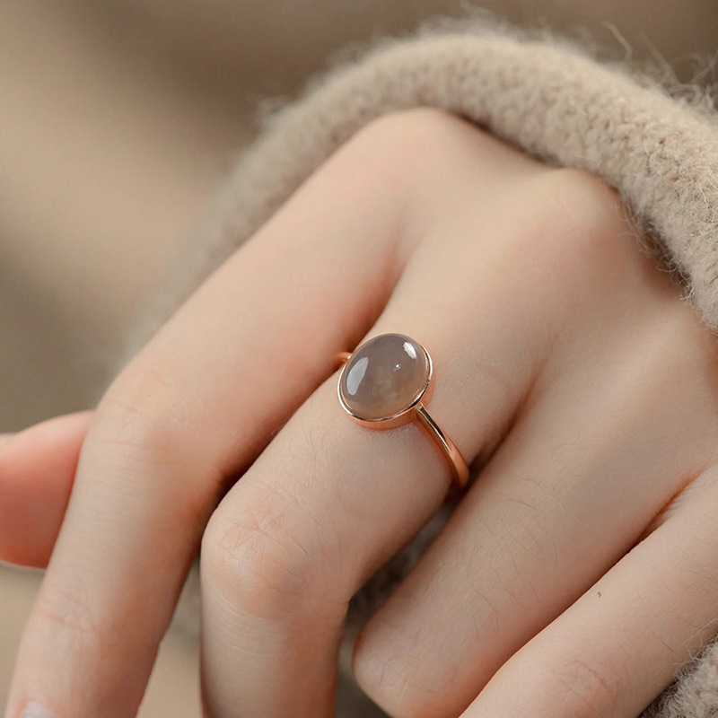 烟紫和田玉晴水蛋面可调节戒指轻奢高级感复古
