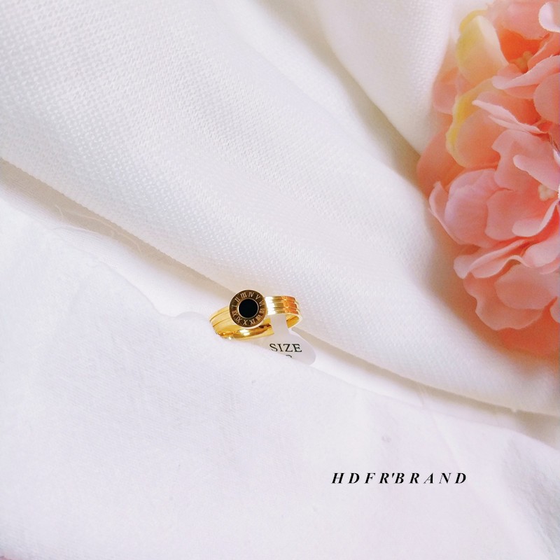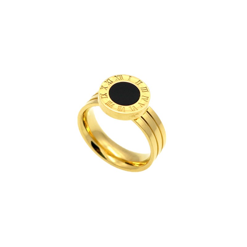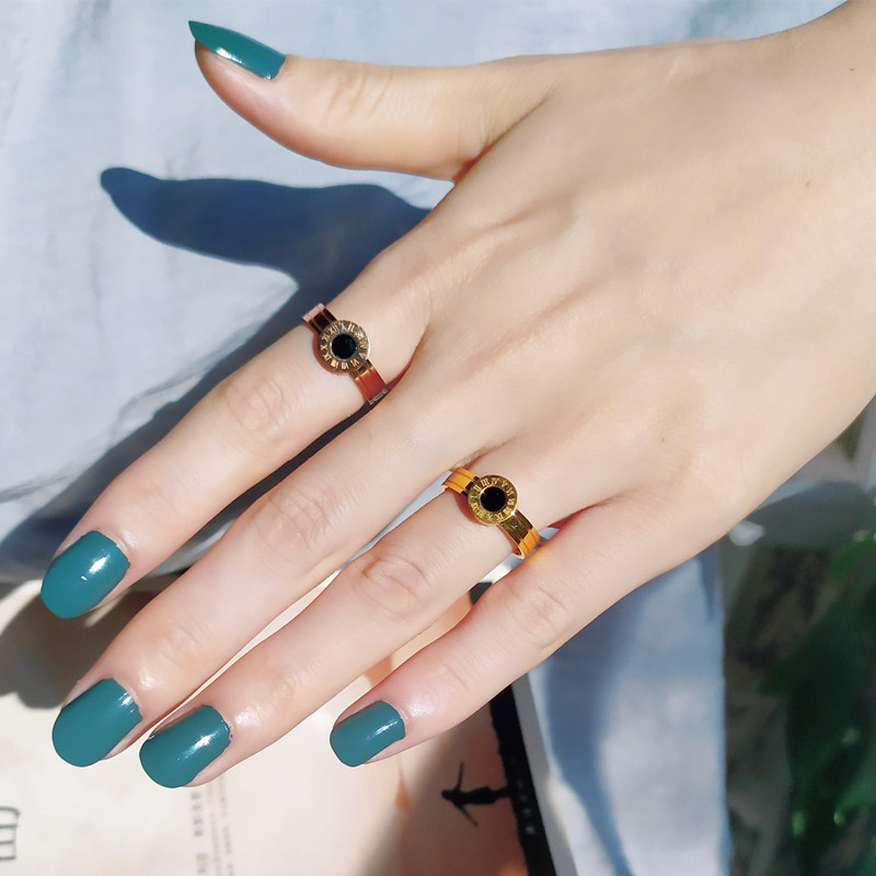 Huo Ting小众设计镀18K金数字黑色圆形戒指女ins冷淡风网红指环
