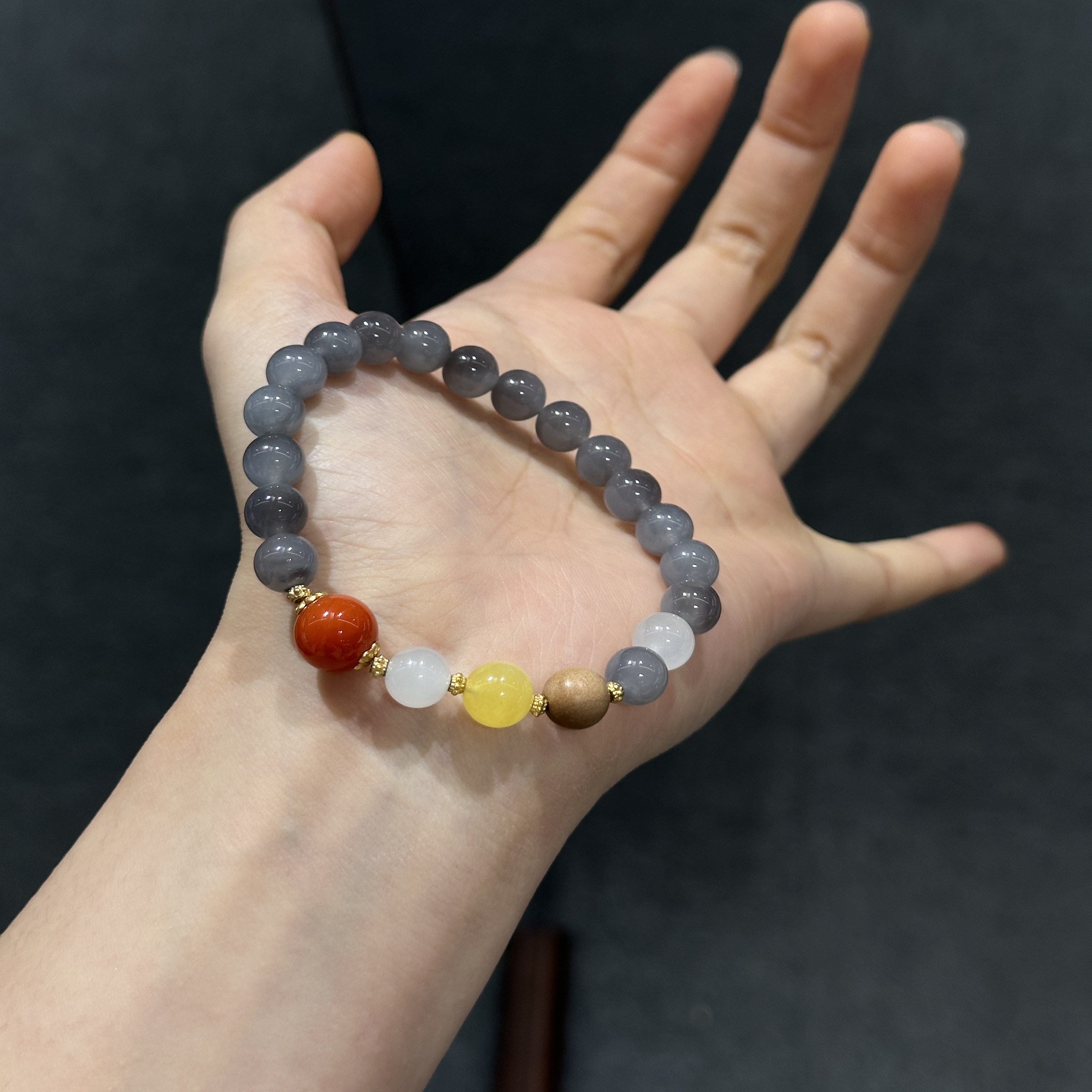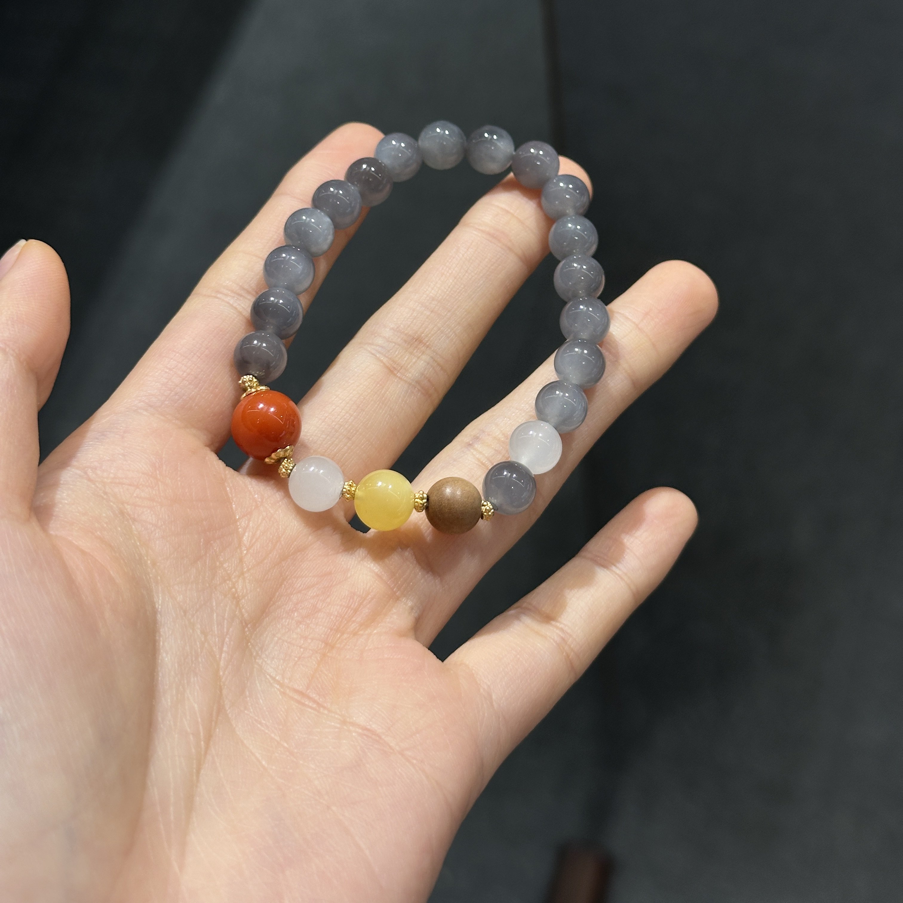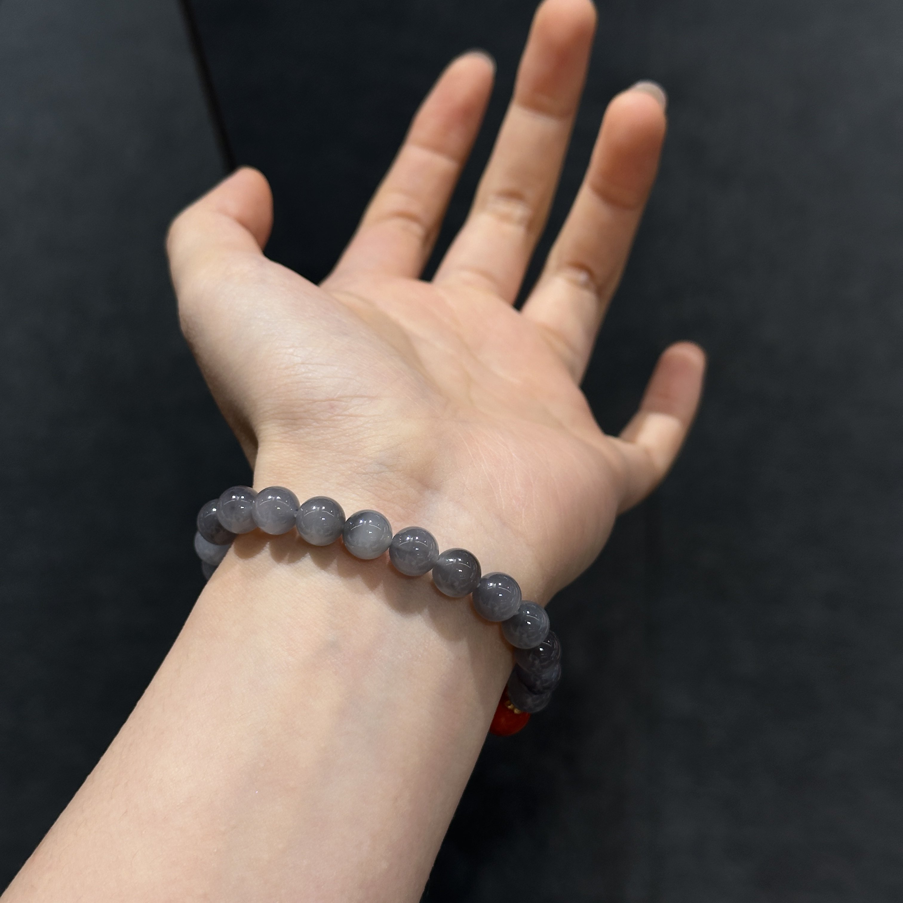 天然和田玉8mm烟紫圆珠单圈 美搭款 显高级日常精致款 货号14195