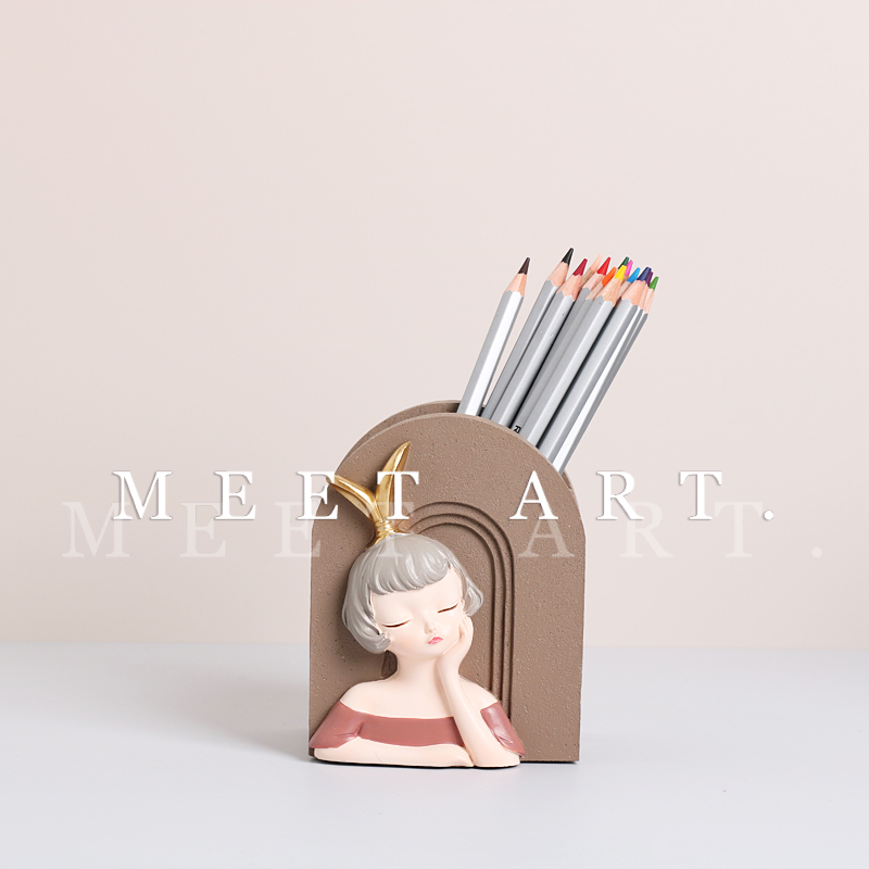 现代简约样板间书房摆件笔筒笔座桌面收纳杯钢笔尺子文具书桌饰品