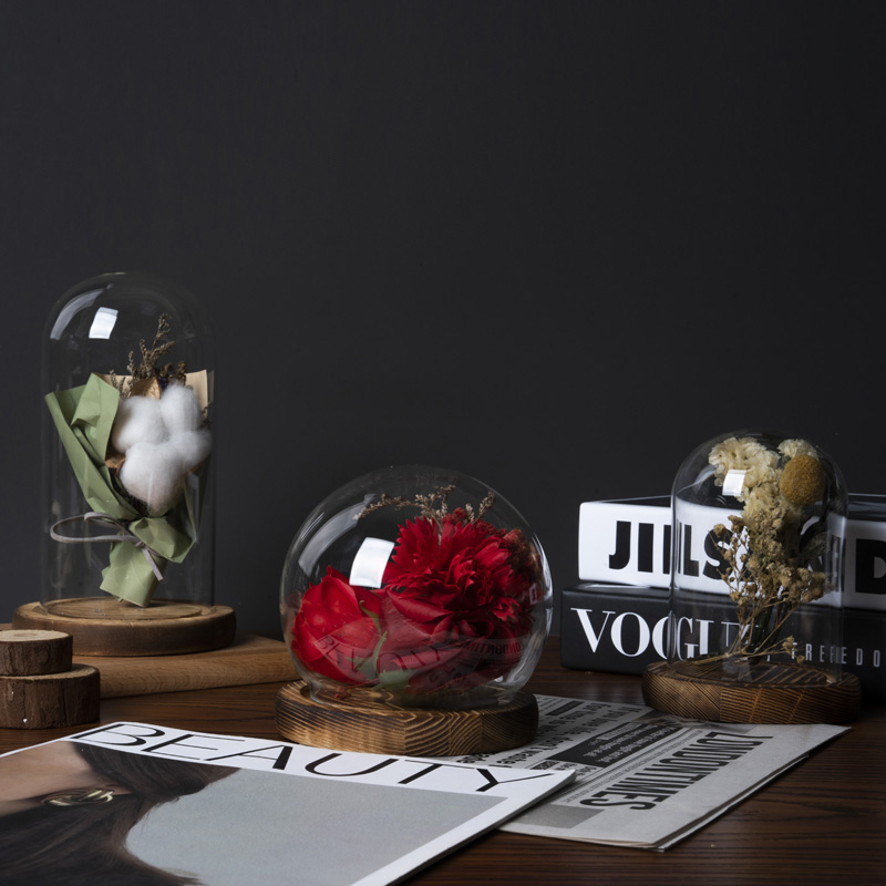 促销永生花玻璃罩干花透明展示盒人偶圣诞树积木手模手办防尘罩