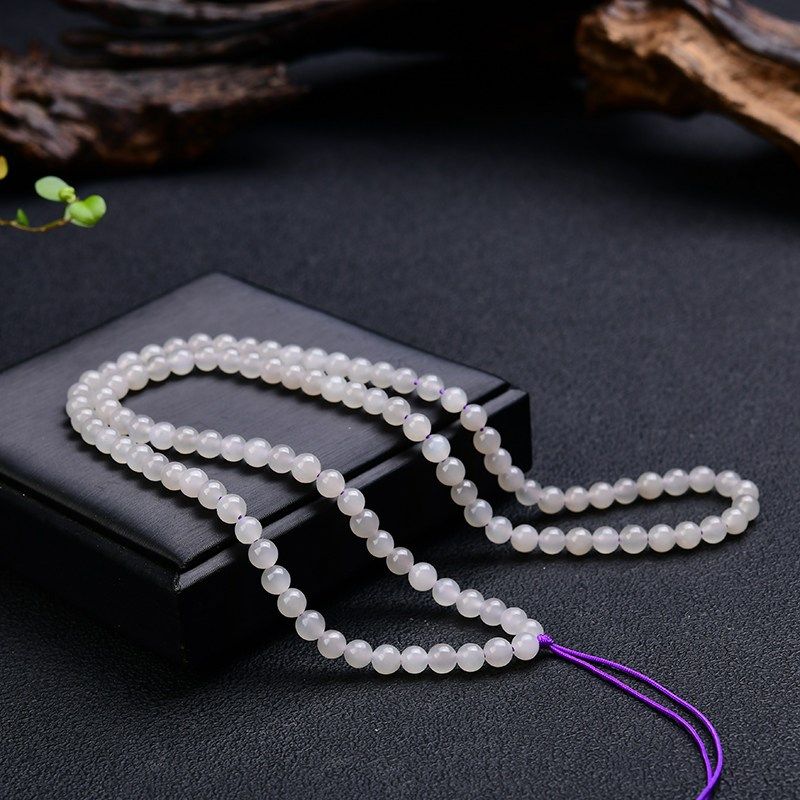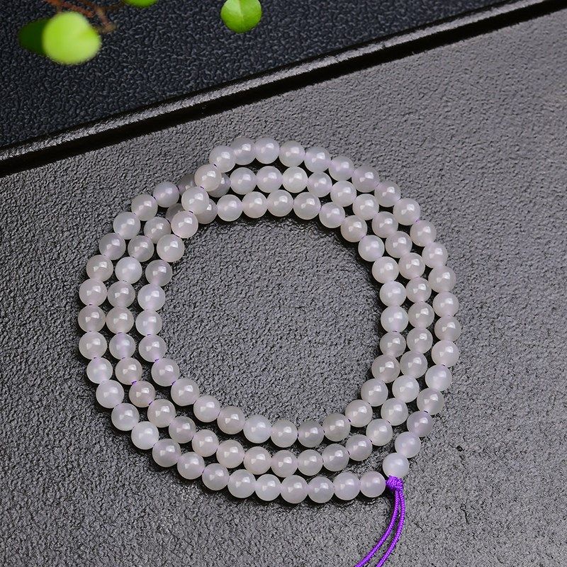 极速天然烟紫和田玉6mm108z颗长链 DIY项链手链 T313