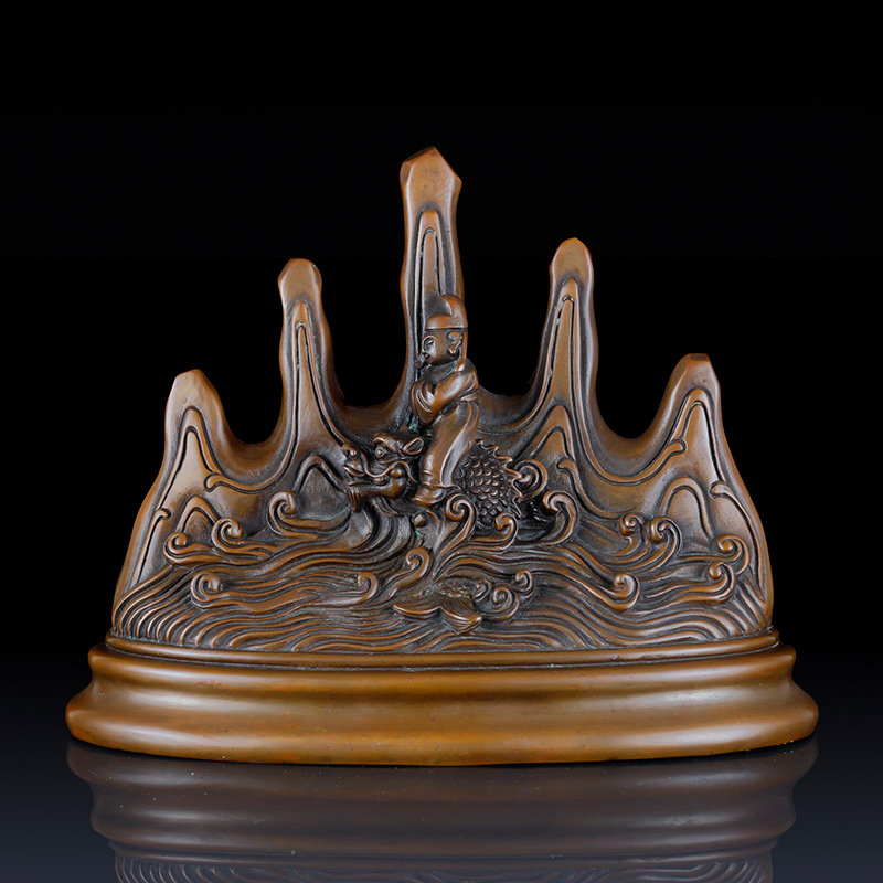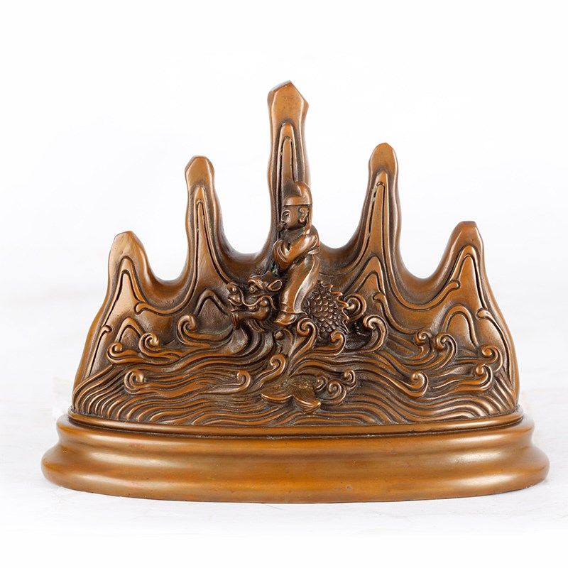 紫铜笔架摆件创意新中式桌面家居办公室桌面铜毛笔架装饰工艺礼品
