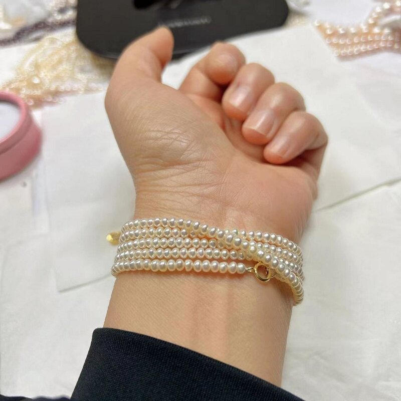 好品质天然淡水3-3.5无核小珍珠项链手链锁骨毛衣链散珠DIY半成品
