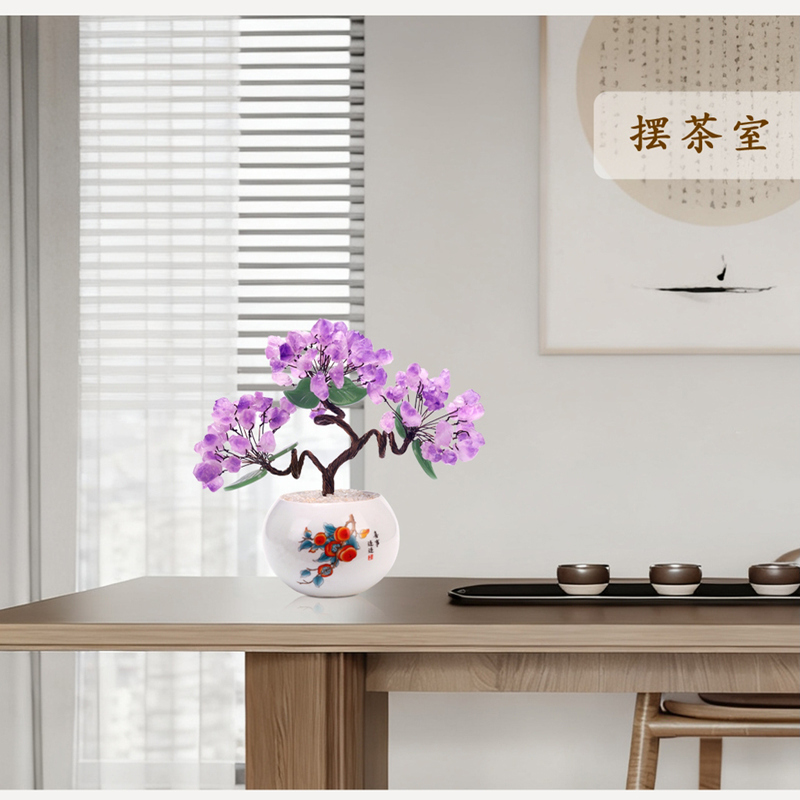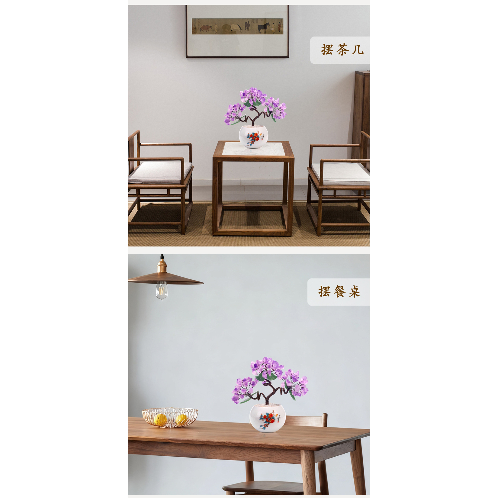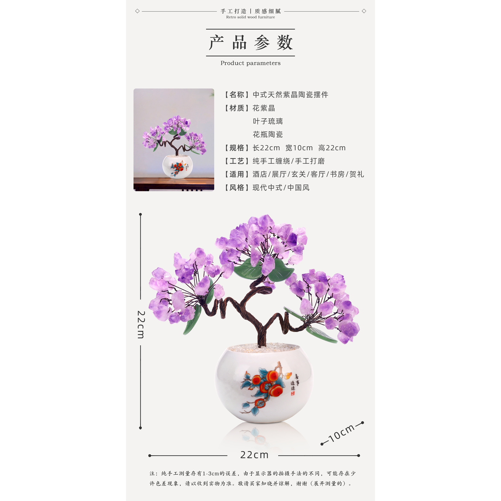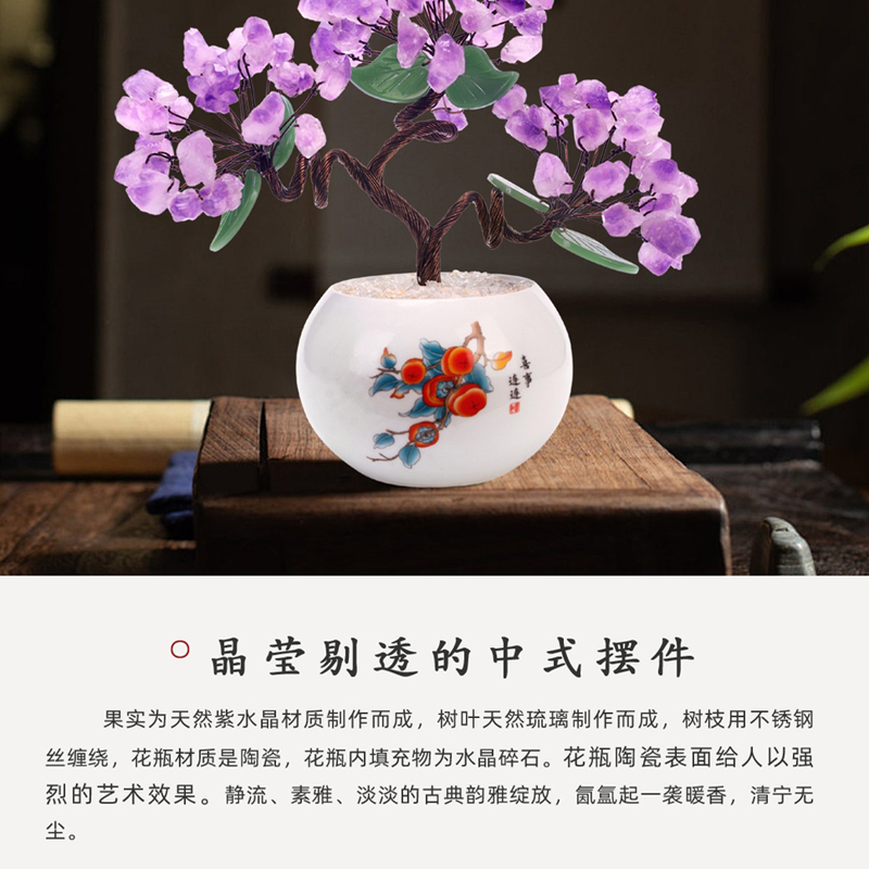 天然玉石紫水晶客厅装饰品工艺品新中式中国风床头柜办公室摆件