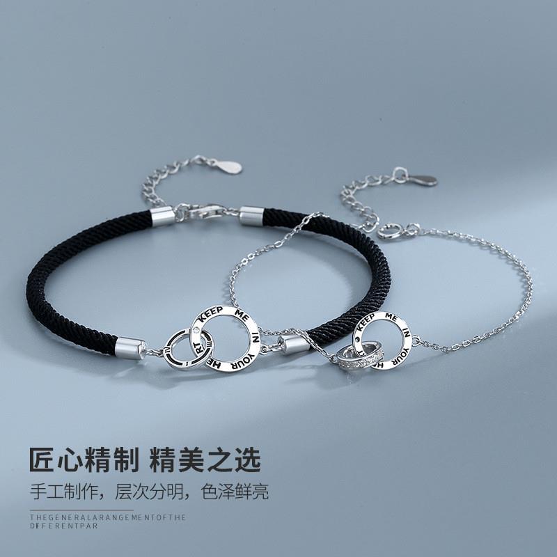 s925纯银双环情侣手链环环相扣手工编织手绳男女一对手镯情人礼物