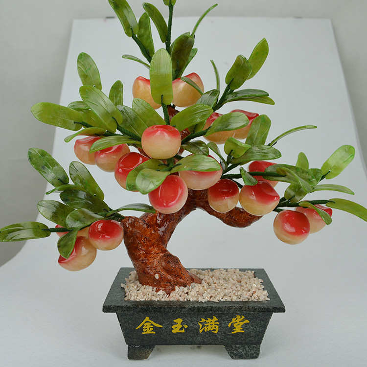 小18个黄玉桃子树玉器盆景玉石客厅摆件工艺品家居饰品创意礼品
