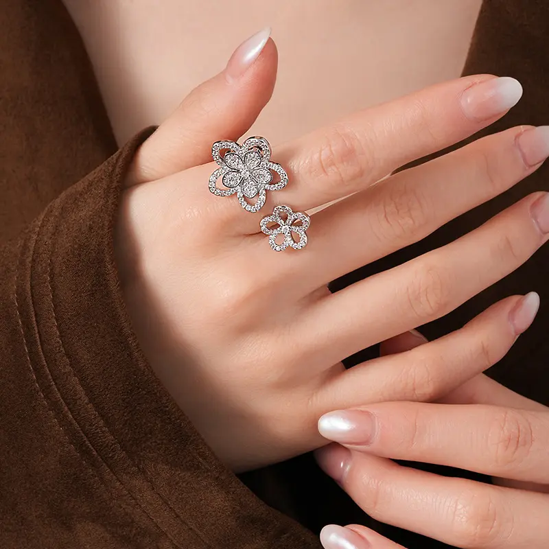 轻奢锆石花朵镂空开口戒指小众冷淡风食指戒网红精致高级感手饰女