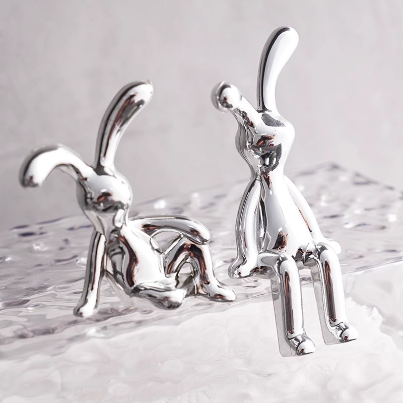 北欧现代电镀创意兔子摆件轻奢客厅汽车潮玩摆件电视柜房间装饰物