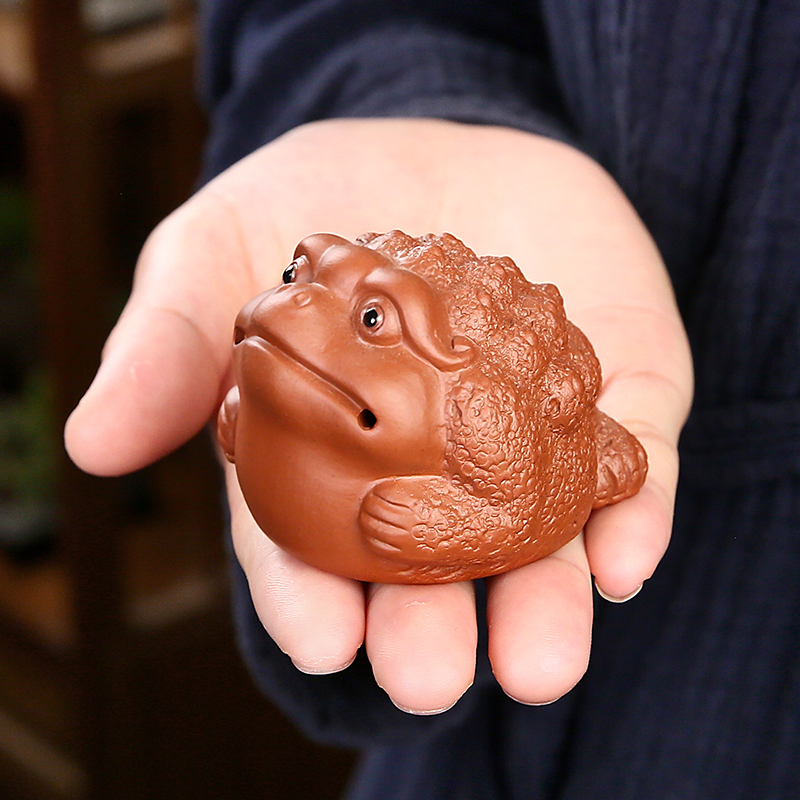 招财金蟾手把件精品手工客厅玄关办公室茶桌装饰摆饰紫砂茶宠可养