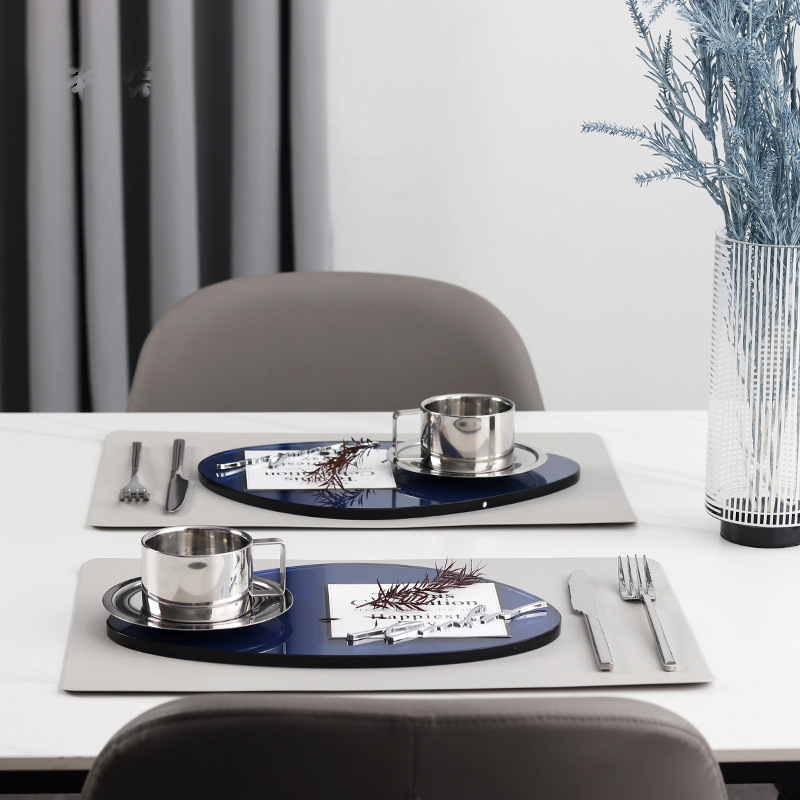轻奢样板房房餐具套装 蓝色系餐桌摆台餐垫刀叉餐盘 不锈钢咖啡杯
