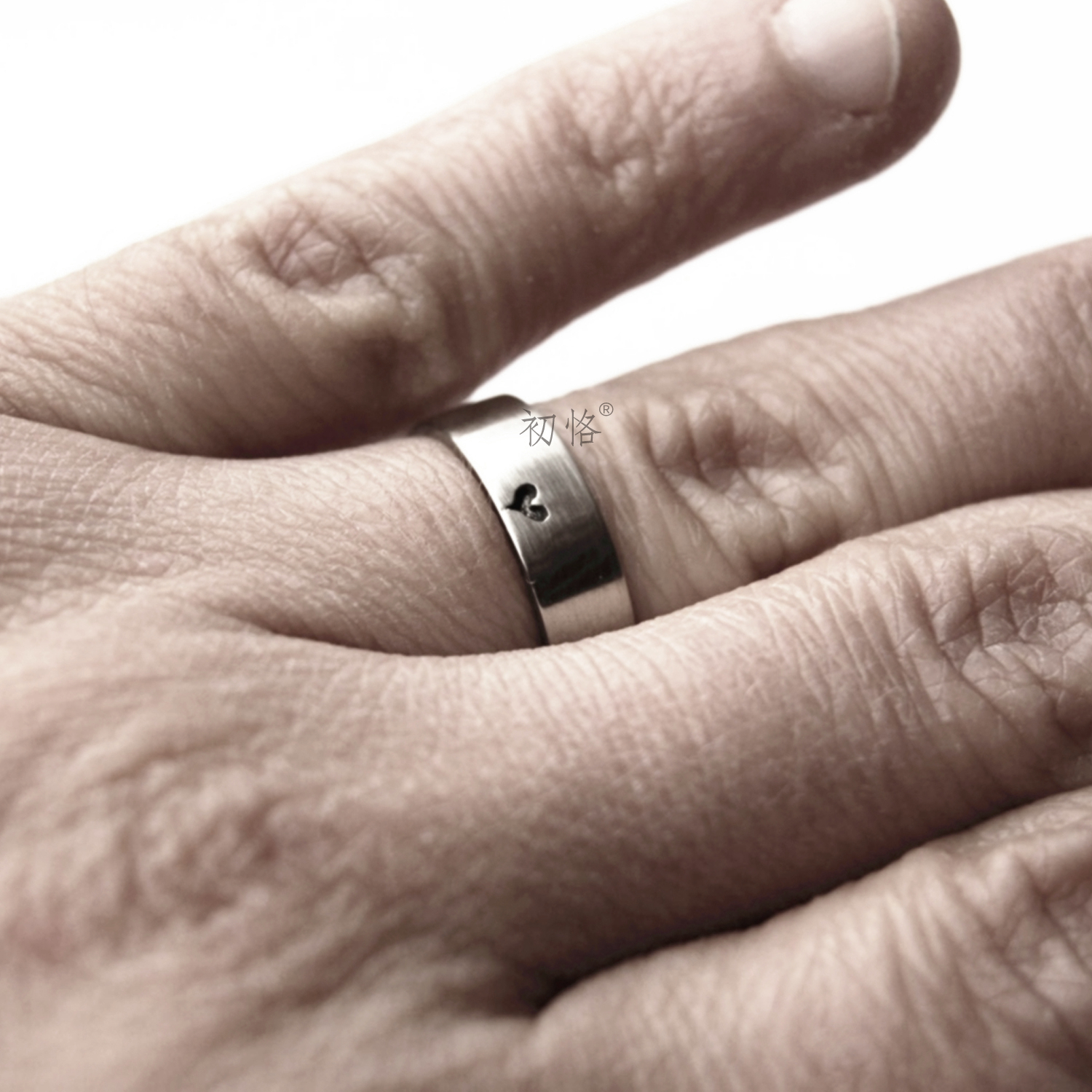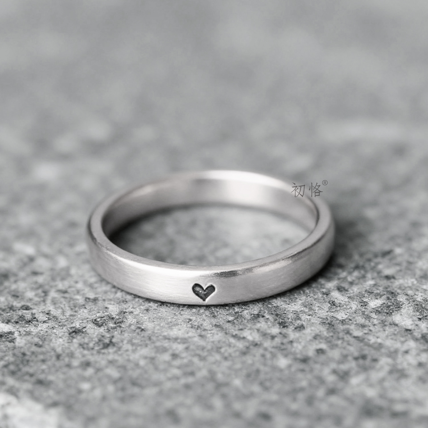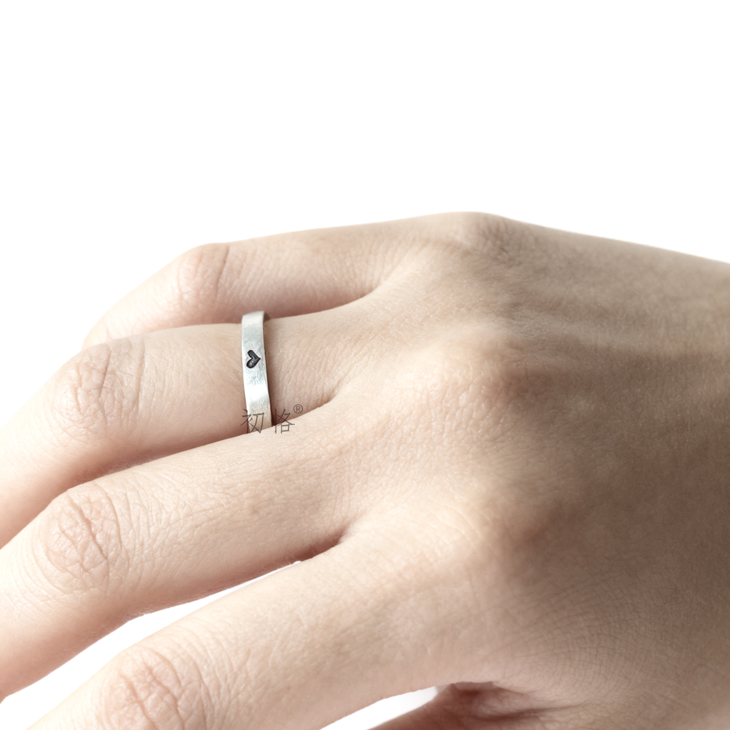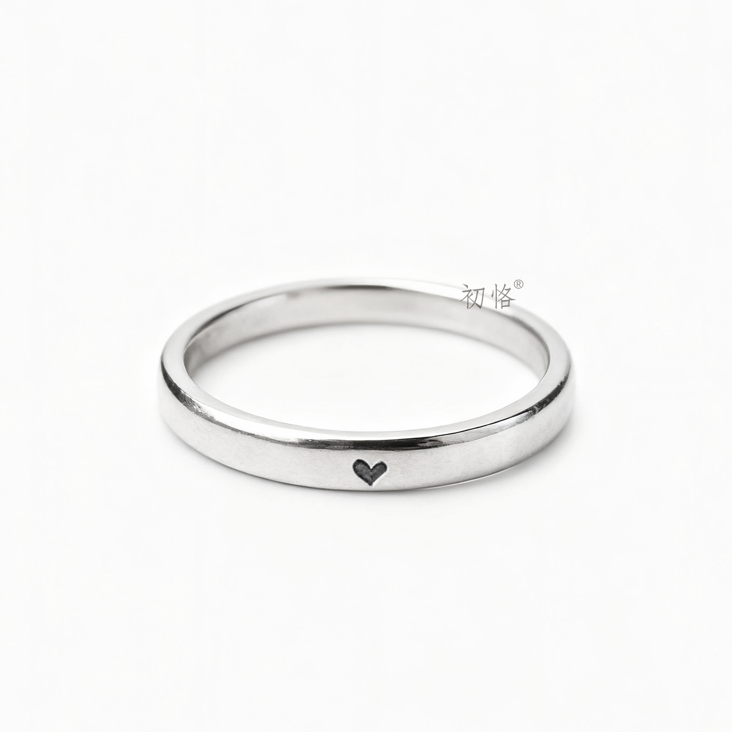 初恪 小爱心桃心雕刻戒指定制符号图标刻字纯银男女情侣戒520礼物