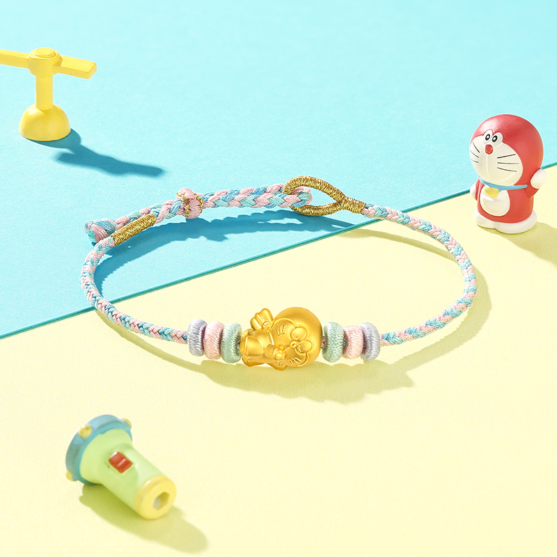 潮宏基哆啦A梦黄金手链足金手绳手饰5D硬金小版天使宝宝