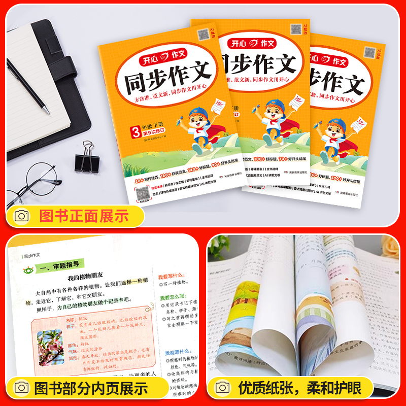 2026春开心同步作文三年级下册一二四五六年级上册下册人教版语文同步阅读理解专项训练书五感法写作文素材小学生优秀作文书大全下