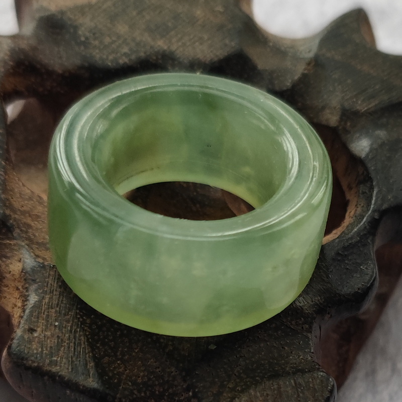 天然珠宝玉石精品岫玉扳指戒指指环男女文玩手饰品窄薄润透精致小