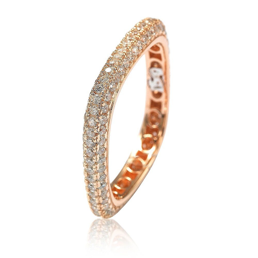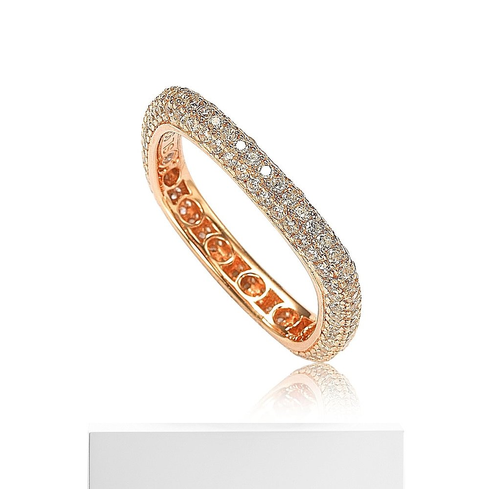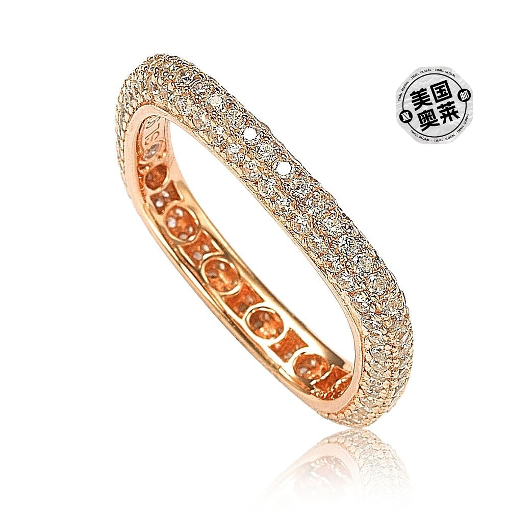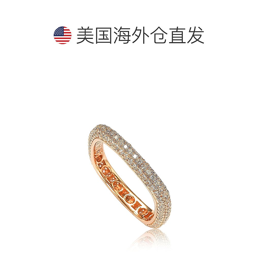 自营 Suzy Levian 玫瑰纯银方晶锆石现代密钉方形永恒戒指 - 粉红