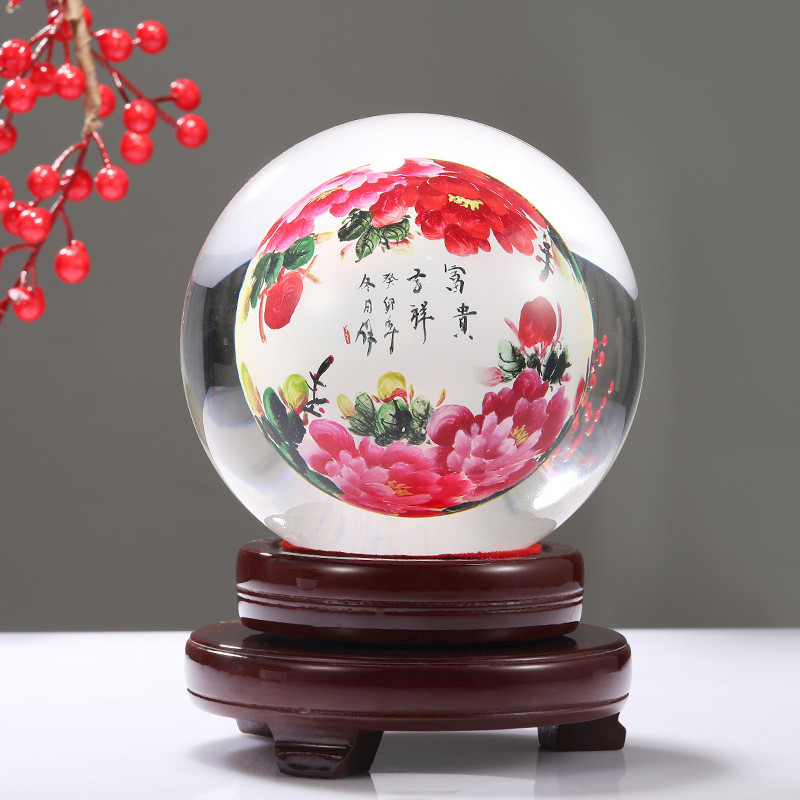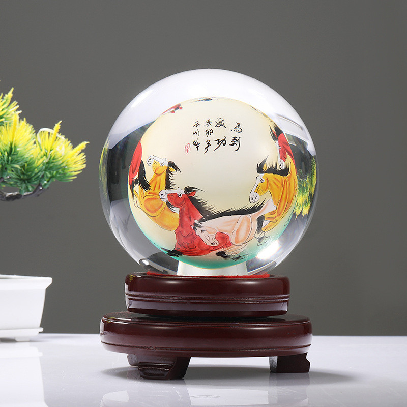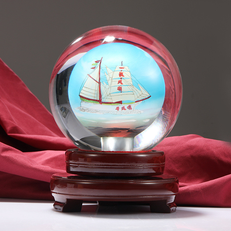 透明水晶内画球创意迎客松一帆风顺透明家居批发水晶饰品桌面摆件