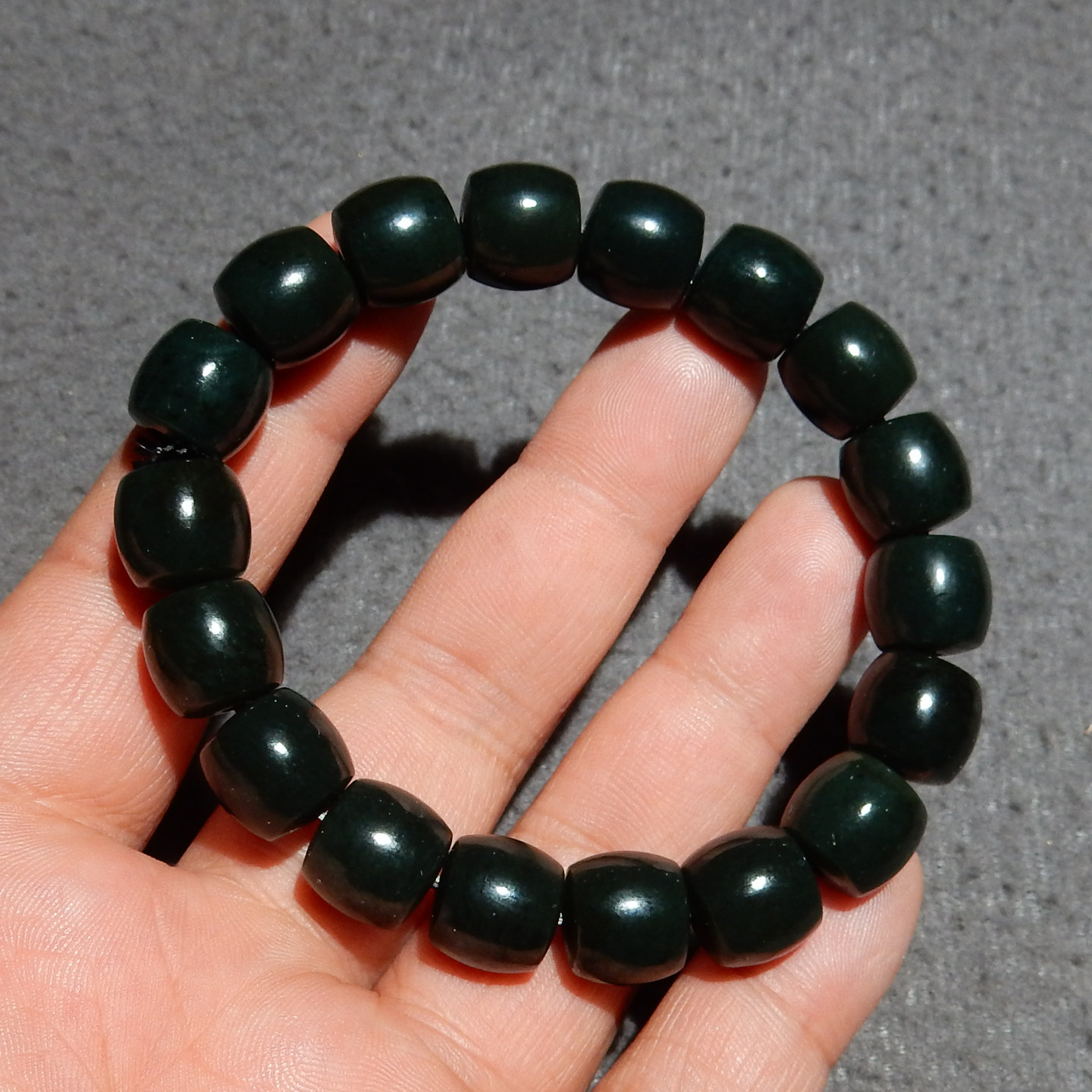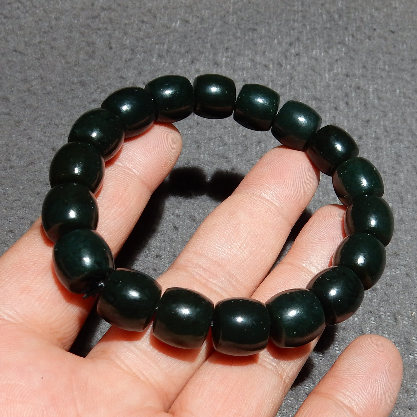 亏麻了方言和田玉精品新疆温润细腻塔县黑青玉卡12mm老型珠手串O8