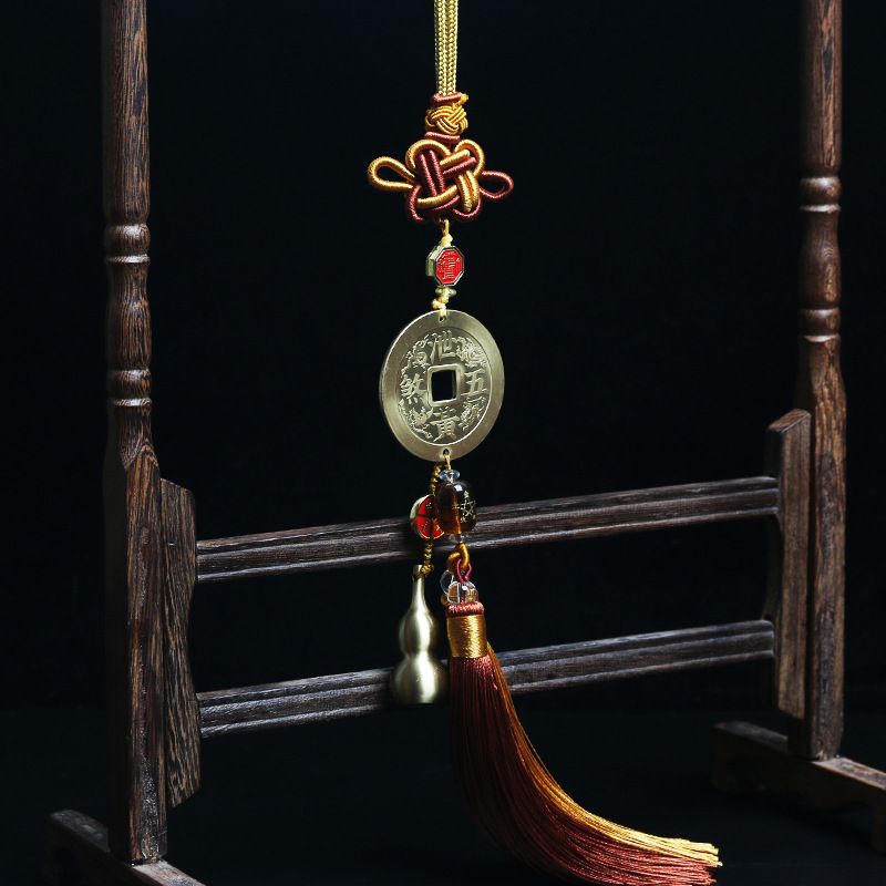 2026丙午马年五黄二黑车挂件铜钱合金太岁镇守令客厅装饰品车挂件