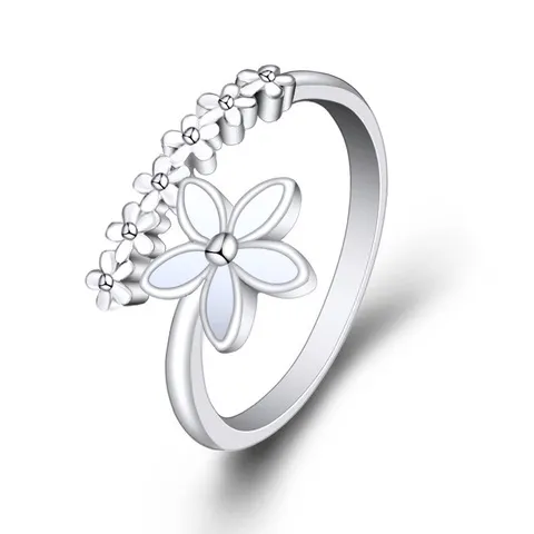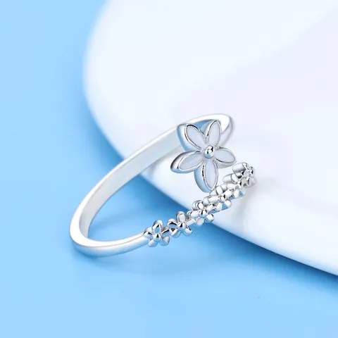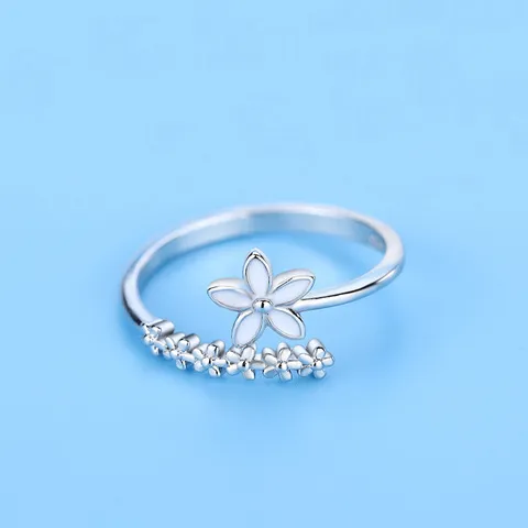 戒指小清新女银饰品食指戒时尚韩版白色小花森系滴釉花朵开口