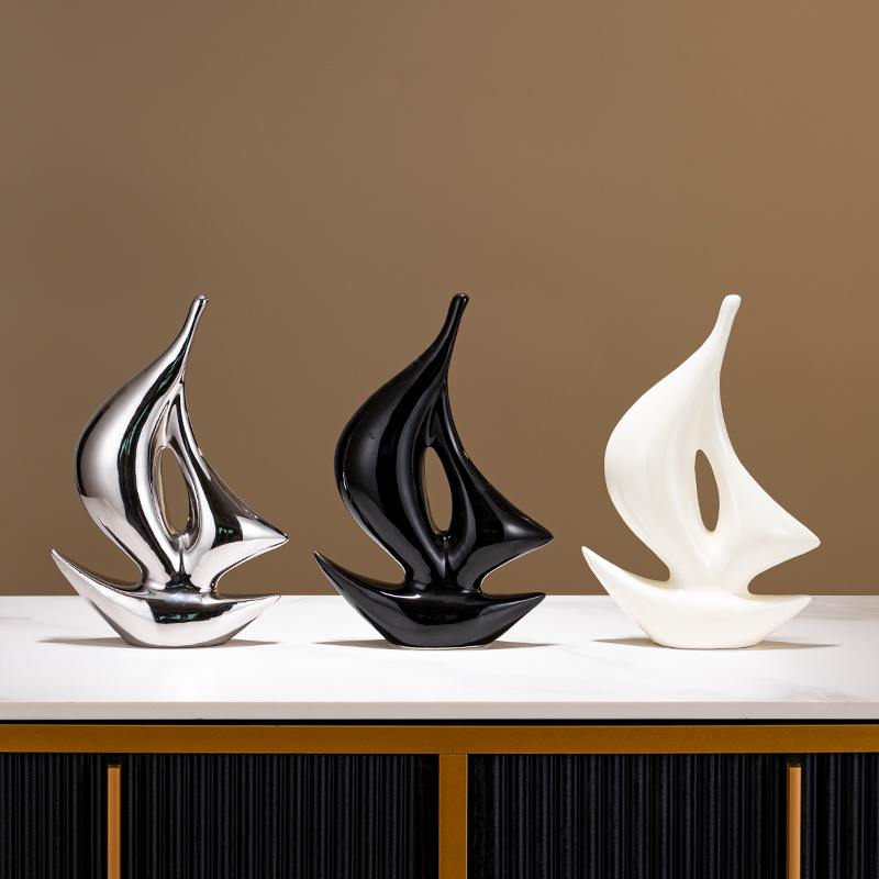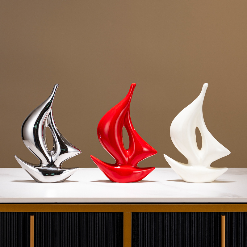 红色一帆风顺帆船摆件轻奢高档现代老板办公室客厅玄关酒柜装饰品