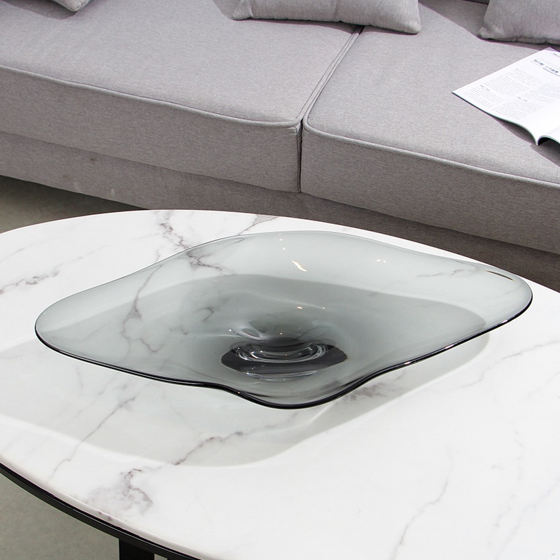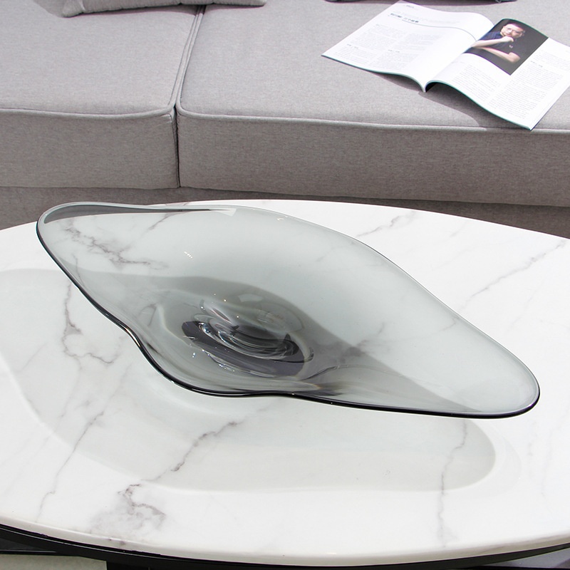 家居现代酒店前台摆件 灰色玻璃水果盘样板房装饰售楼处摆场摆设