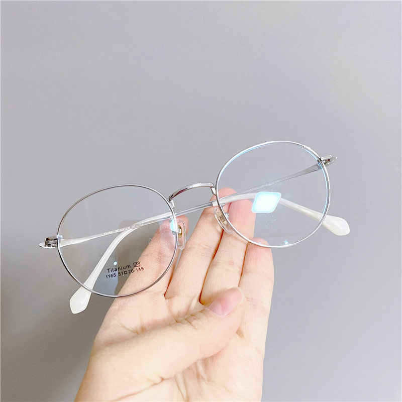 超轻复古精致纯钛圆形眼镜框男女通用可配近视散光眼睛架文艺银色