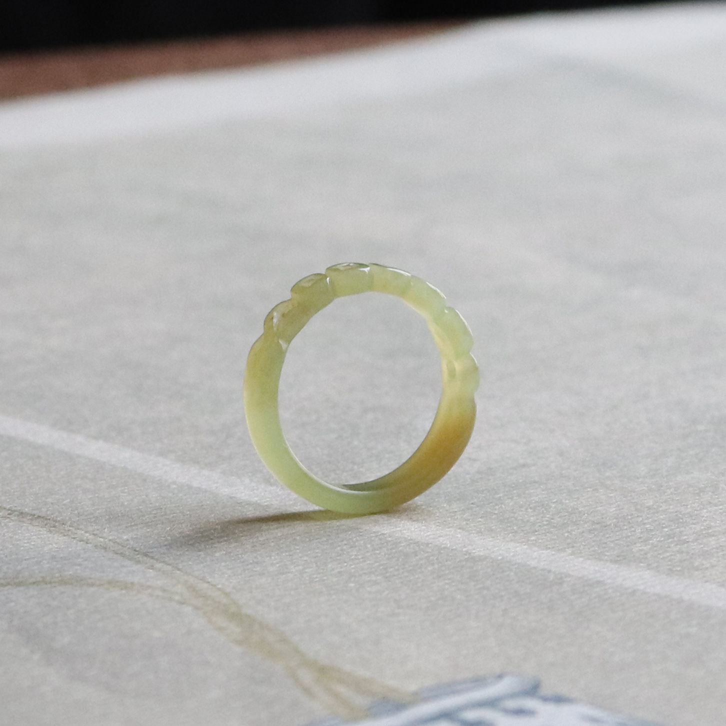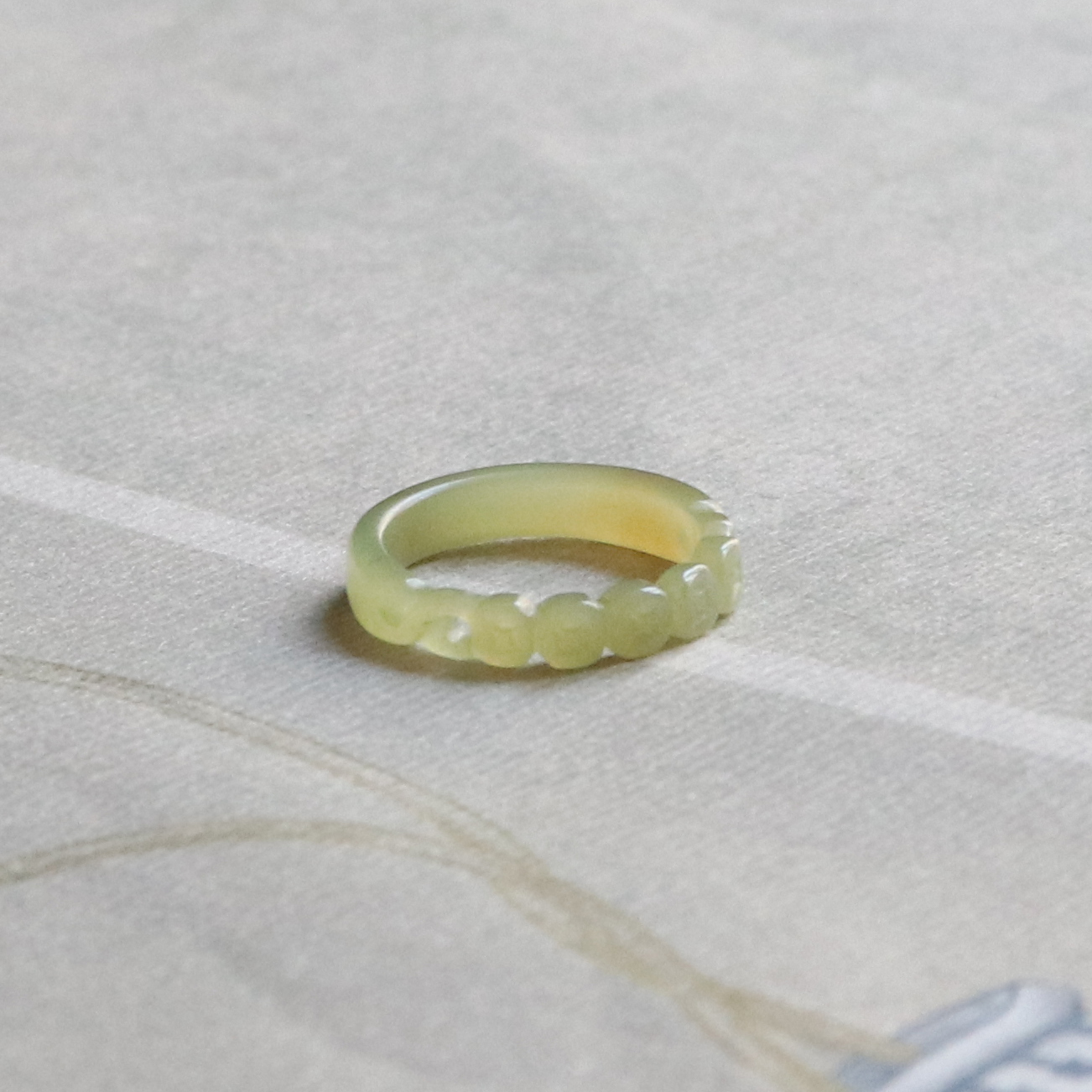 天然和田玉黄口铜钱戒指简约玉石招财聚财戒子新中式指环带证书