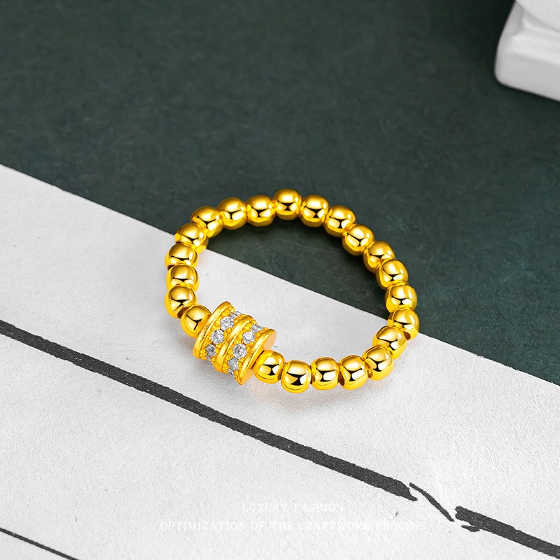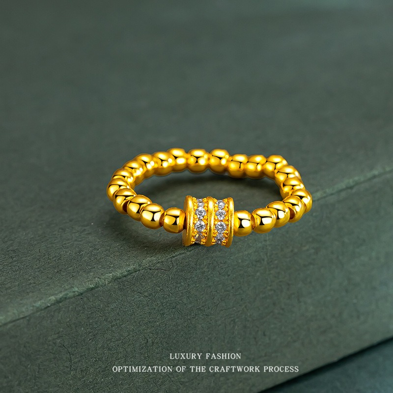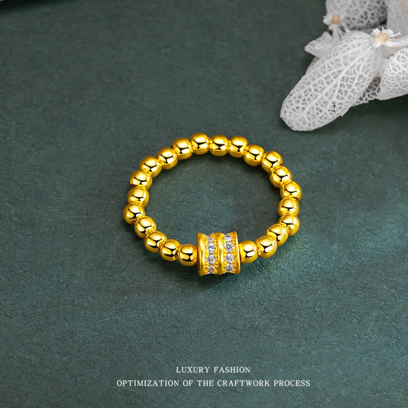 弹力绳光珠小蛮腰钻戒古法沙金百搭小众气质戒指戒指手串铜指环女