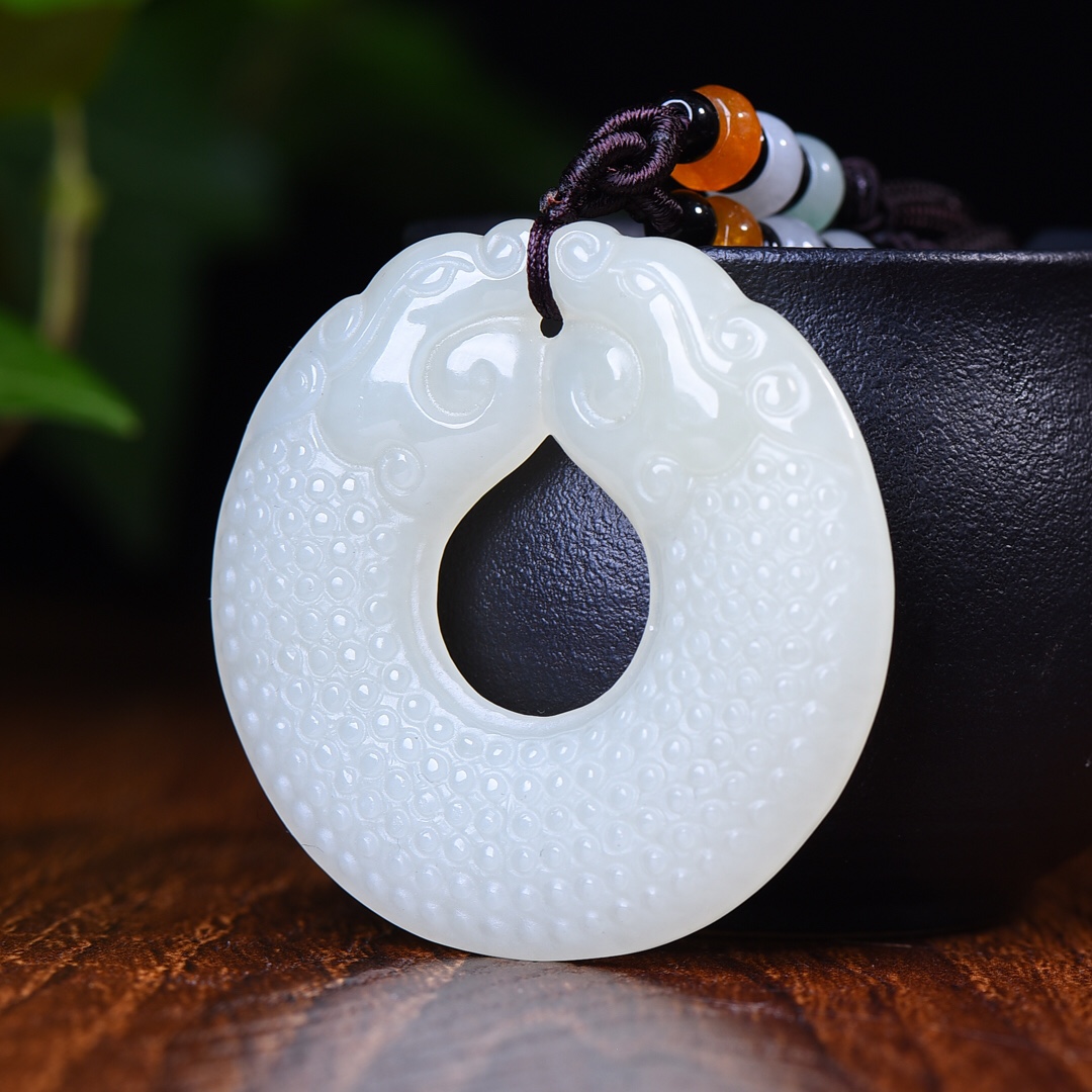 新疆和田玉羊脂玉白玉青白玉双龙平安扣吊坠男女士款挂件玉坠玉佩