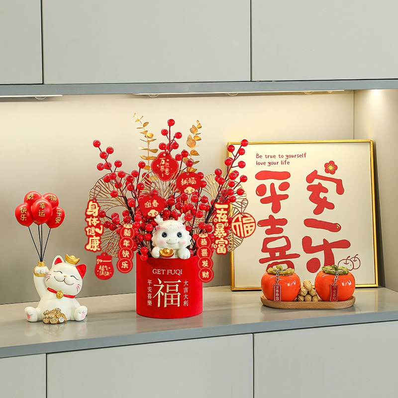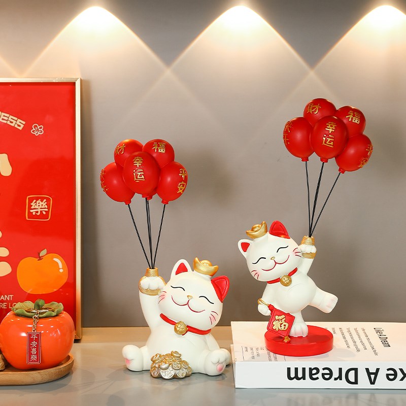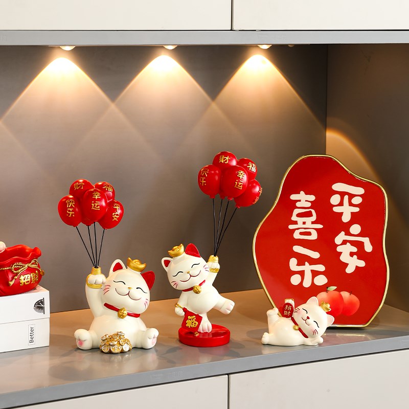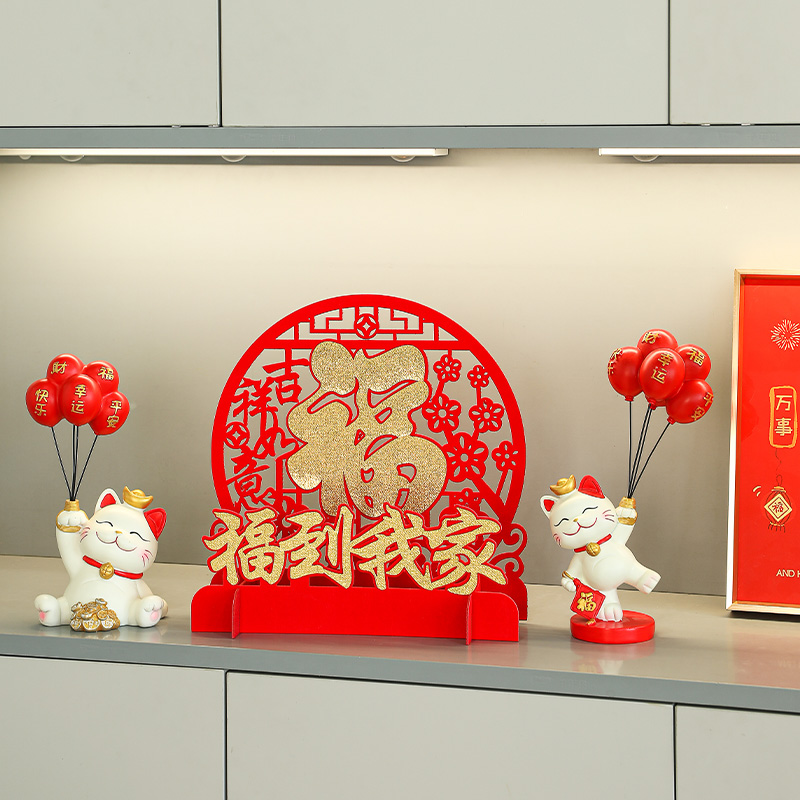新年福字装饰品招财猫摆件入户春节客厅玄关电视鞋柜乔迁新居礼物