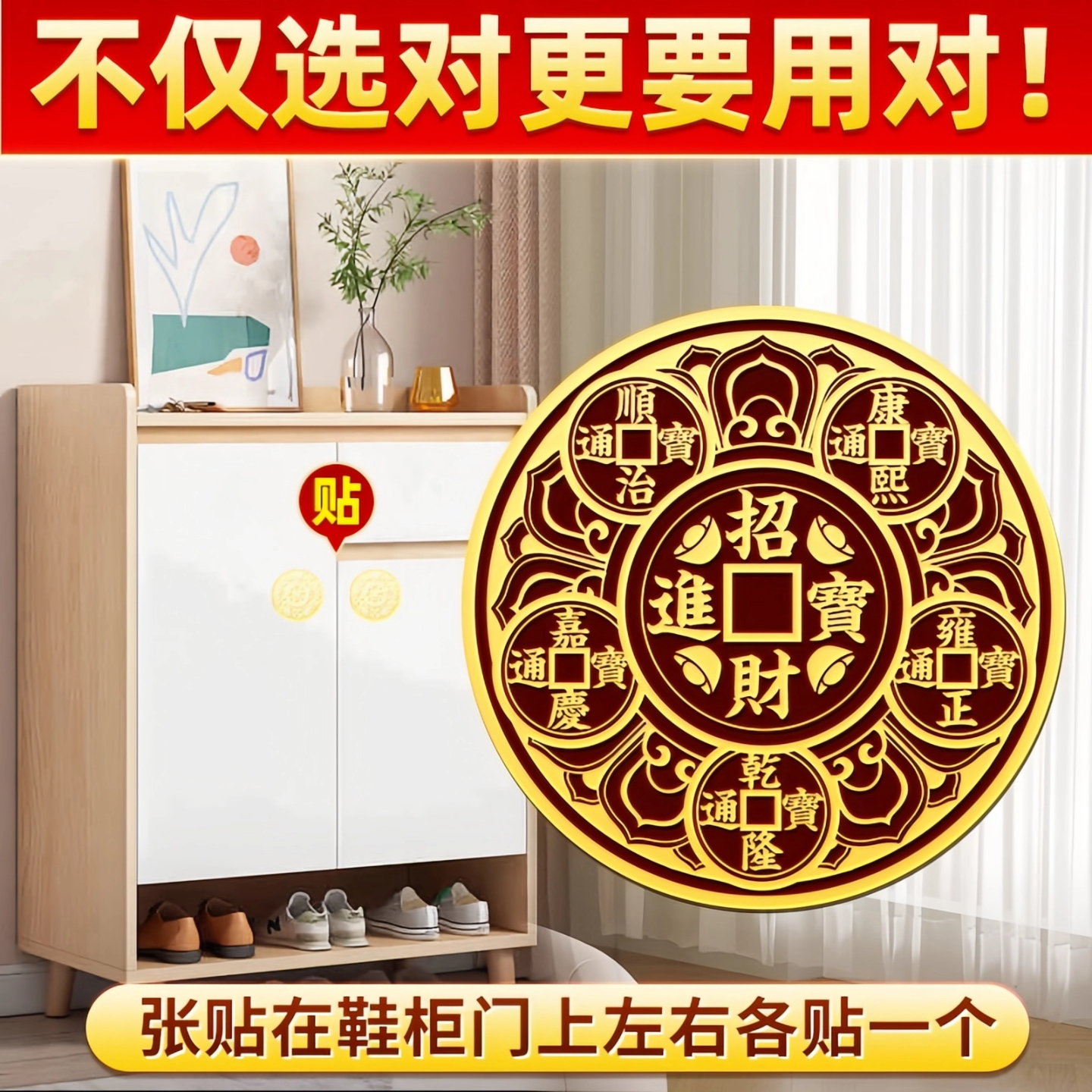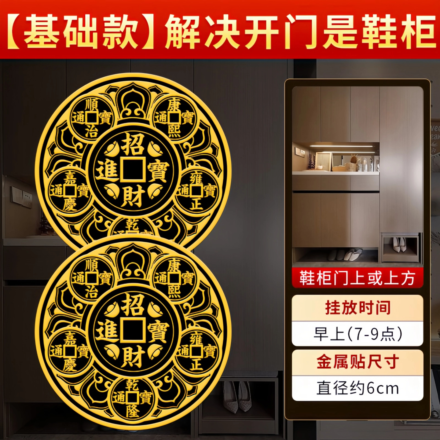 2025年开门见鞋柜鞋架鞋柜门招财摆件家用旺宅金属贴迎财化污为财