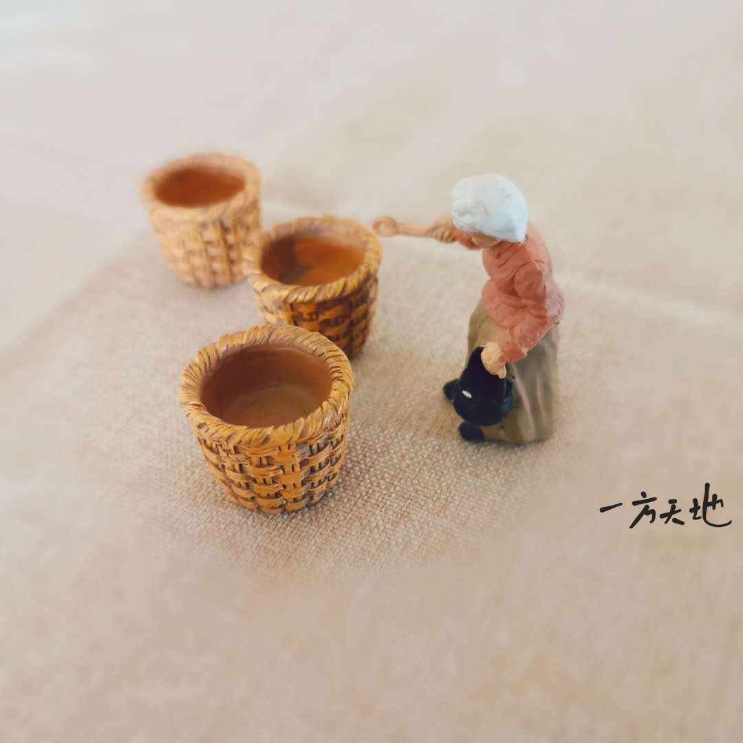 场景模型仿真微缩农用工具迷你小竹编竹筐篮子篮筐菜筐微距摆件