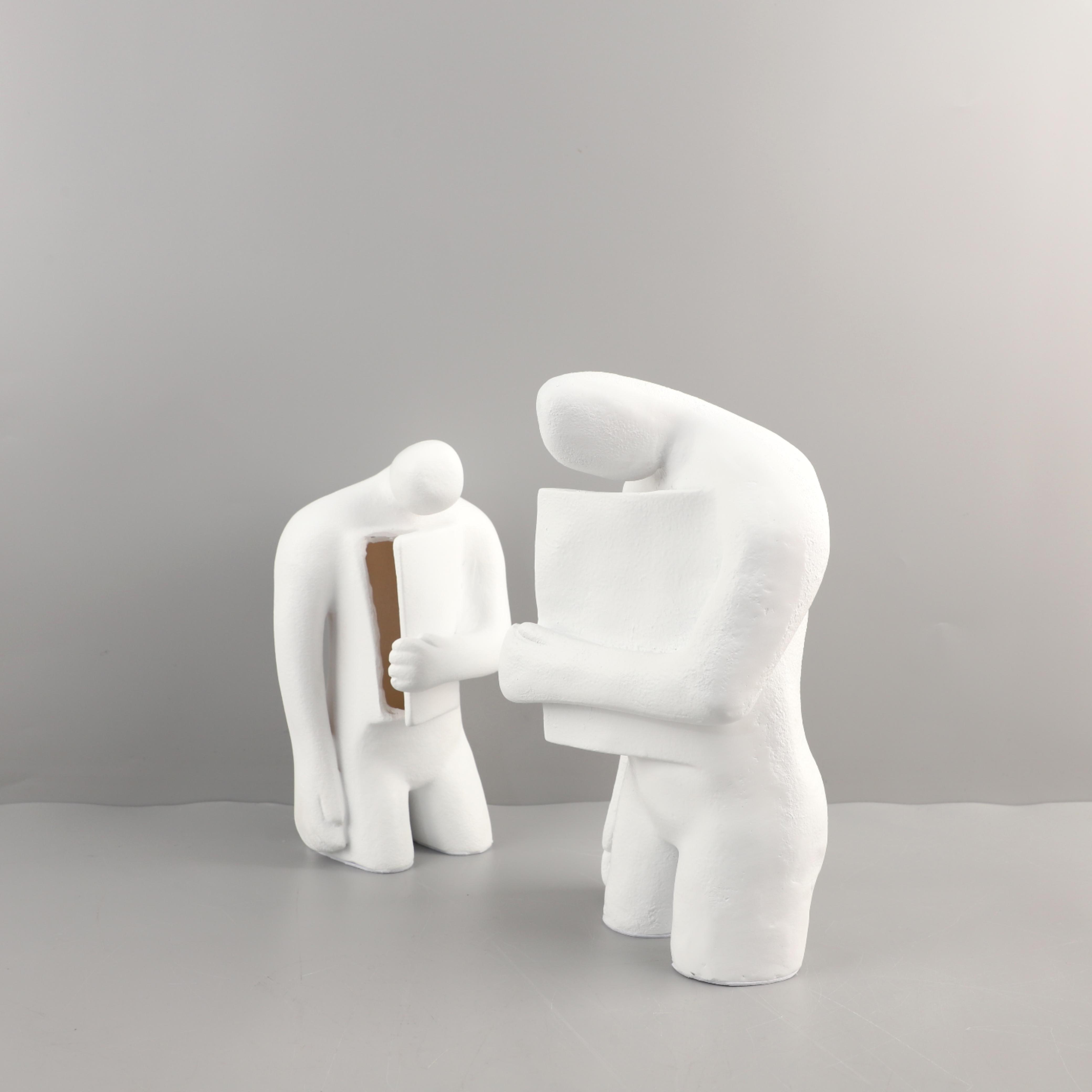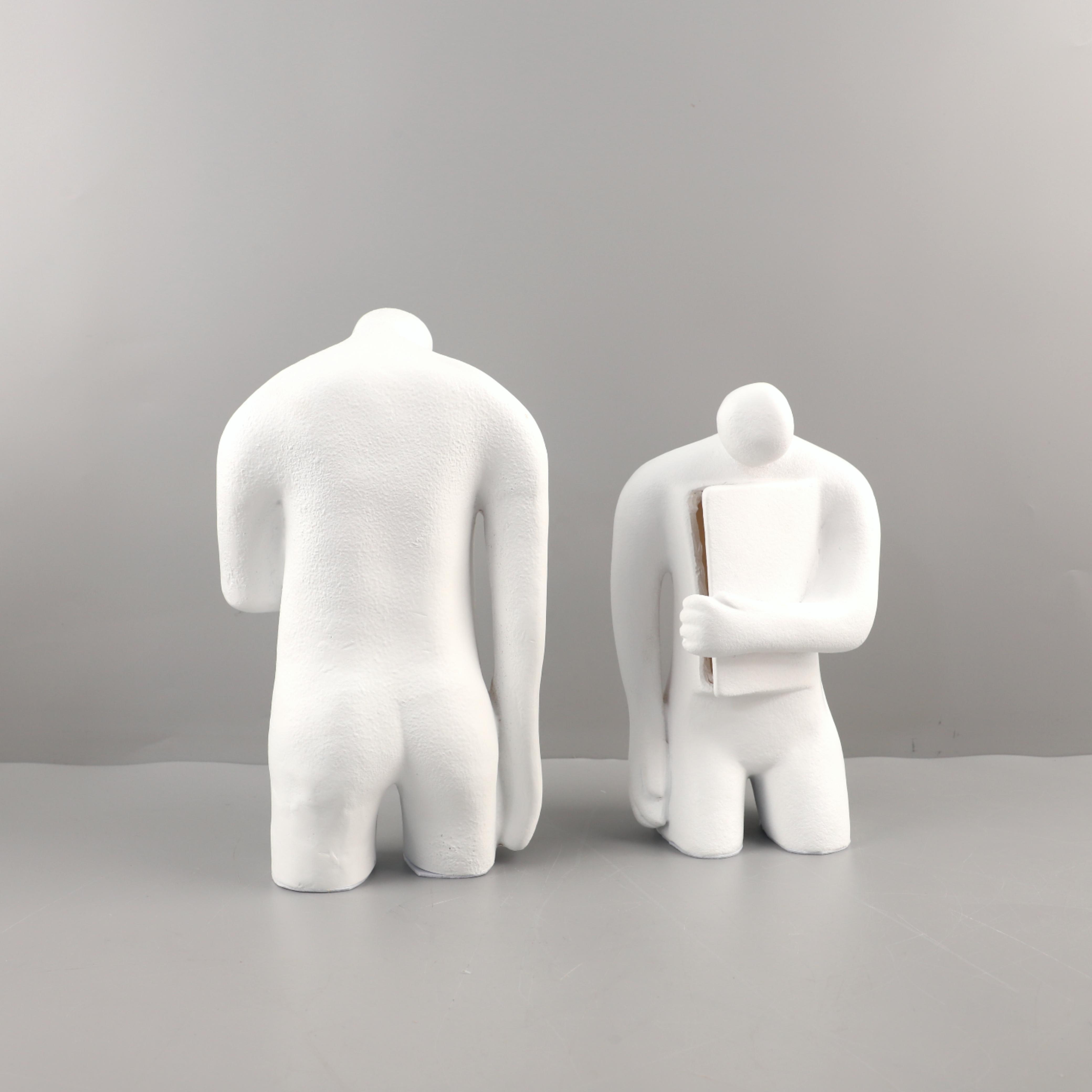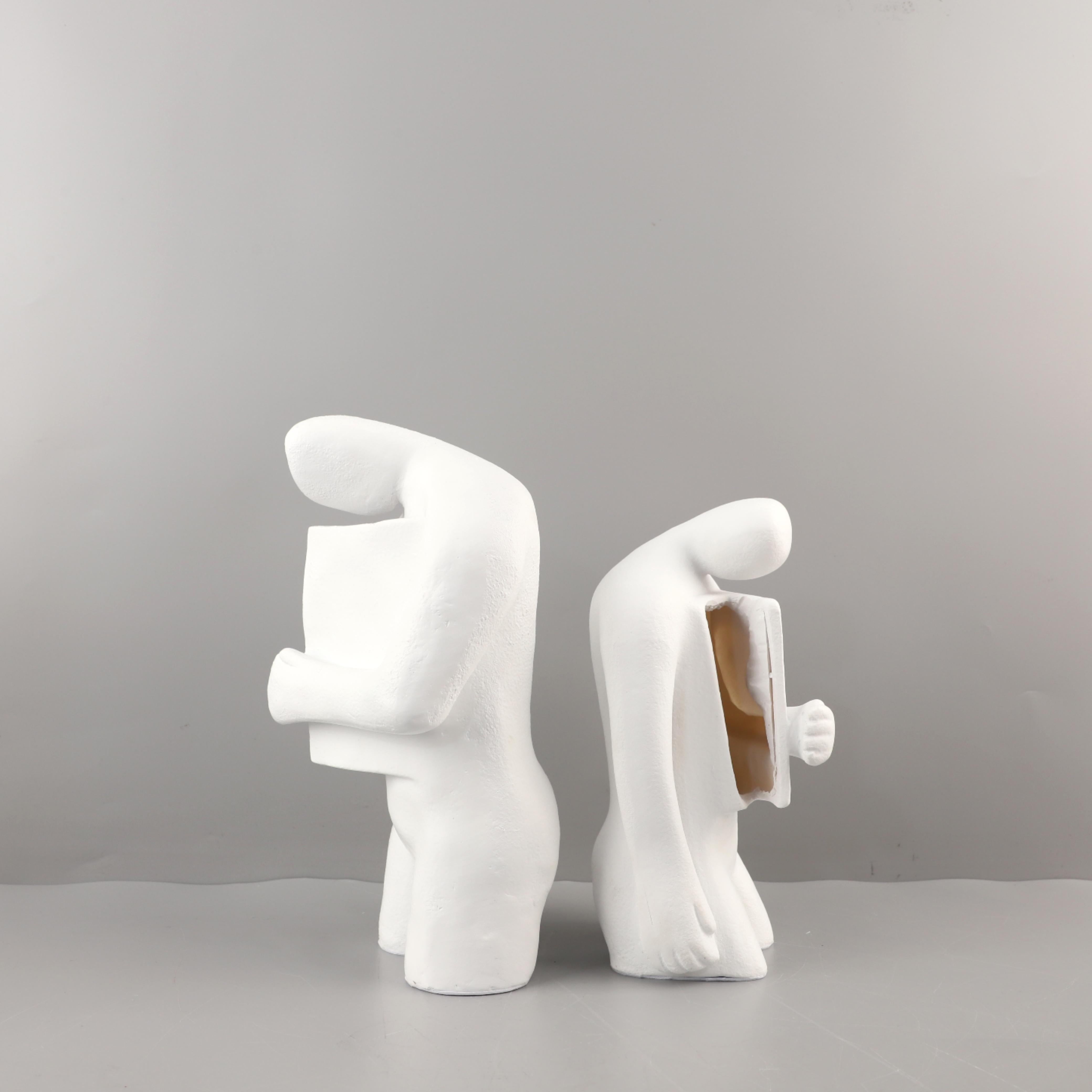 北欧创意抽象白色树脂打开心扉人物雕塑摆件玄关电视柜家居装饰品