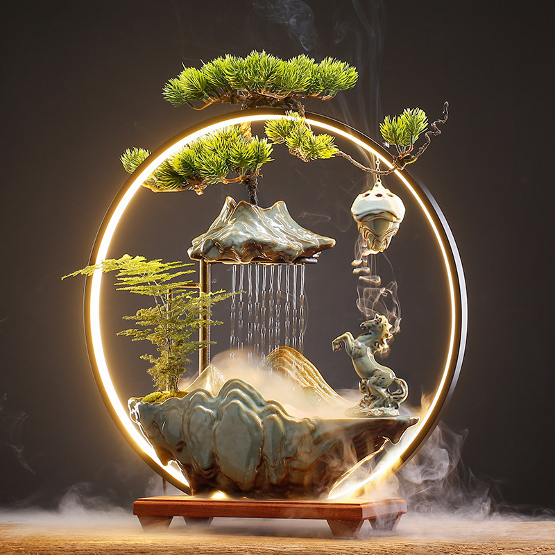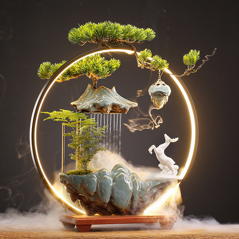 招财流水摆件家居创意喷泉客厅办公室桌面玄关乔迁新居开业礼品
