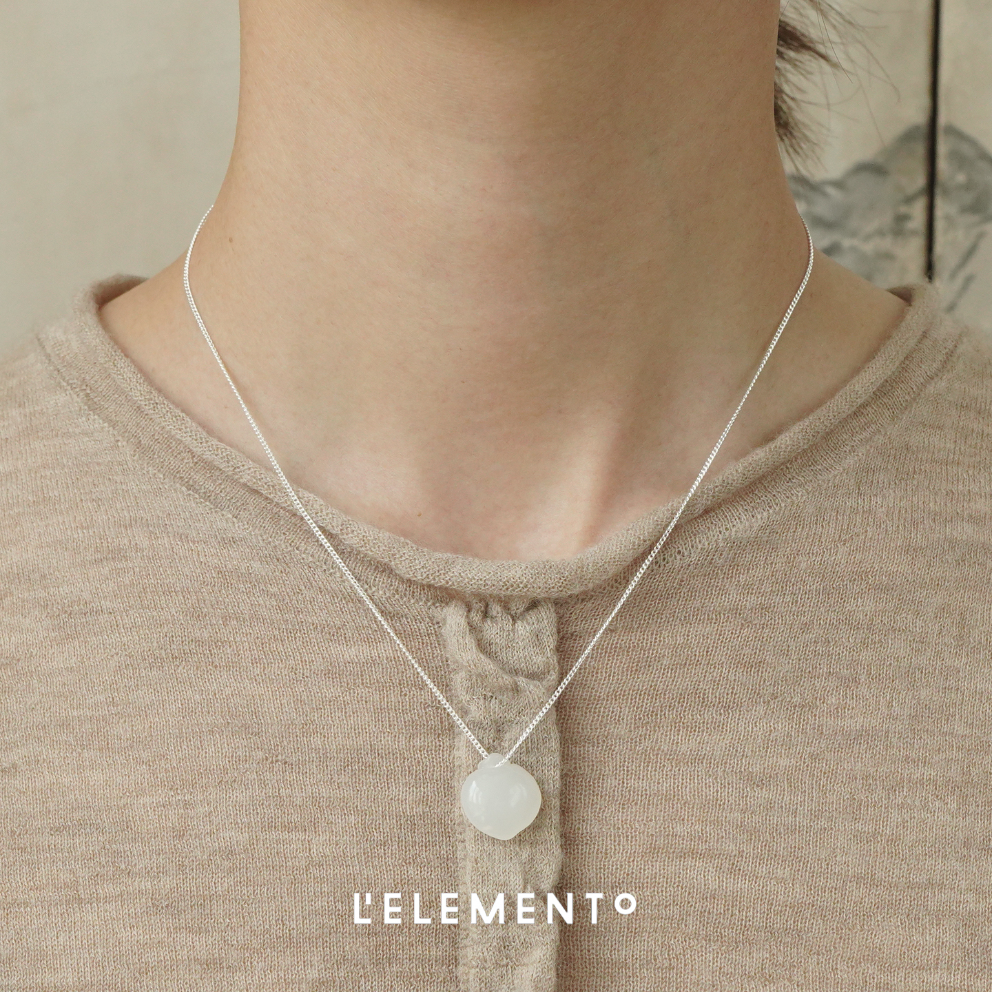 L'ELEMENTO 玛瑙桃心银链吊坠 原创设计LELEMENTO锁骨链项链默叙