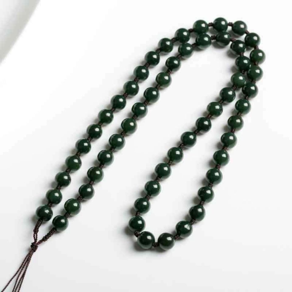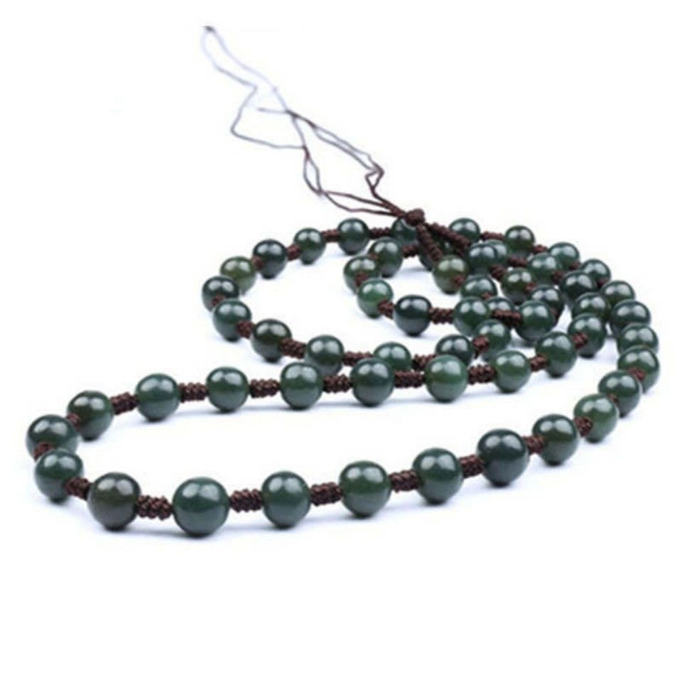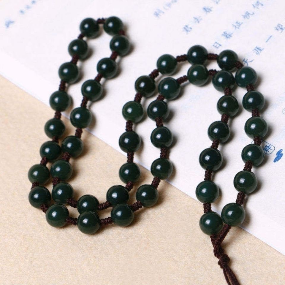 新疆和田色青玉圆珠项链配饰玉挂链子圆珠款手工编织打结挂绳过灯