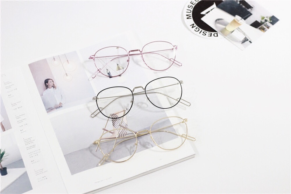 新品超轻细框韩国金属大圆框复古文艺范平光眼镜框架配近视男女