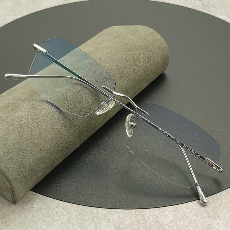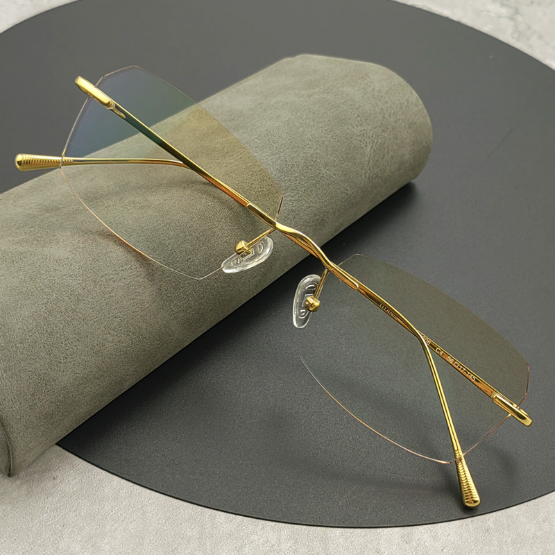 纯钛眼镜男大脸近视可配有高度数加散光防蓝光变色无边框眼睛片女