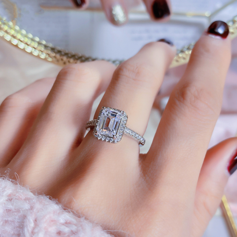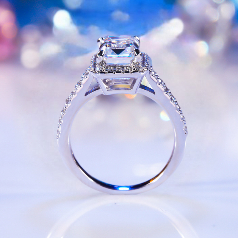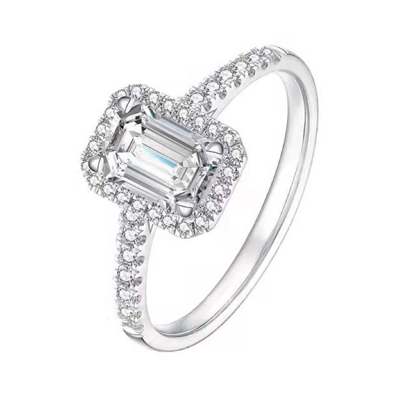 PT950进口莫桑石D色长方形围钻戒指铂金镶嵌分钻黄钻轻奢时尚通勤