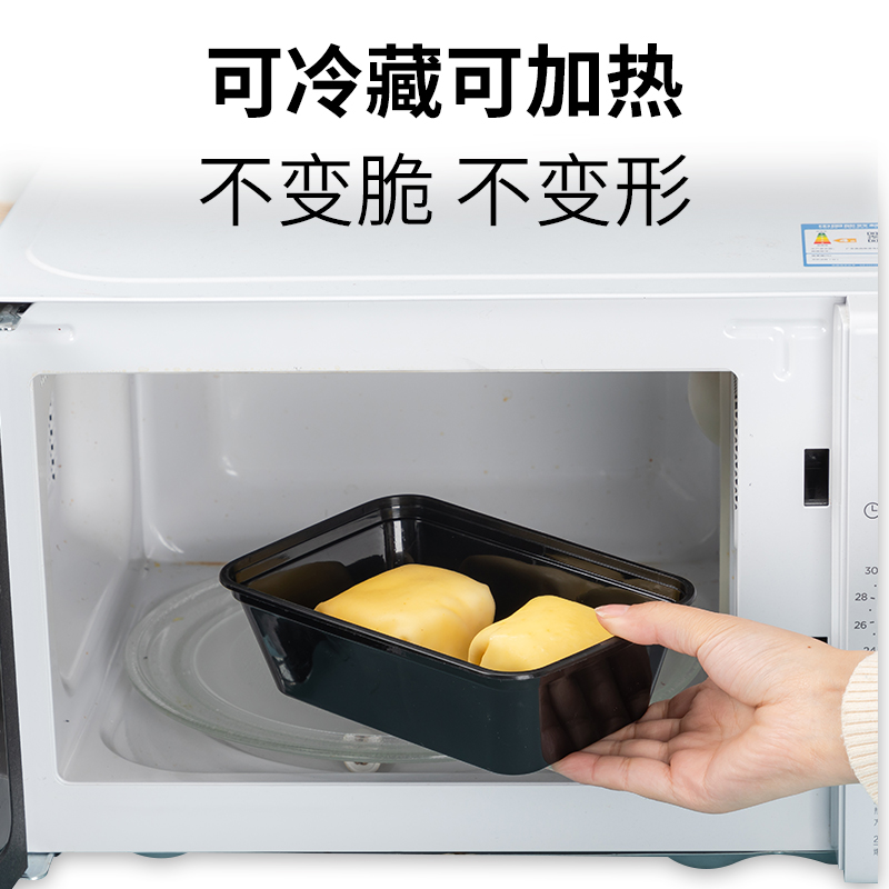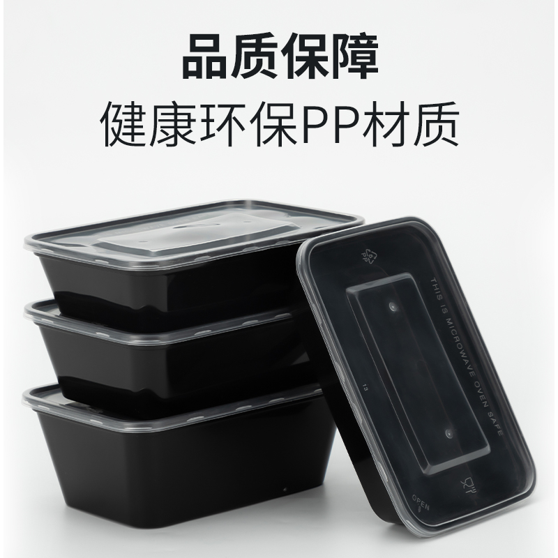 长方形1000ML外卖打包盒一次性餐盒圆形塑料黑色快餐水果便当饭盒
