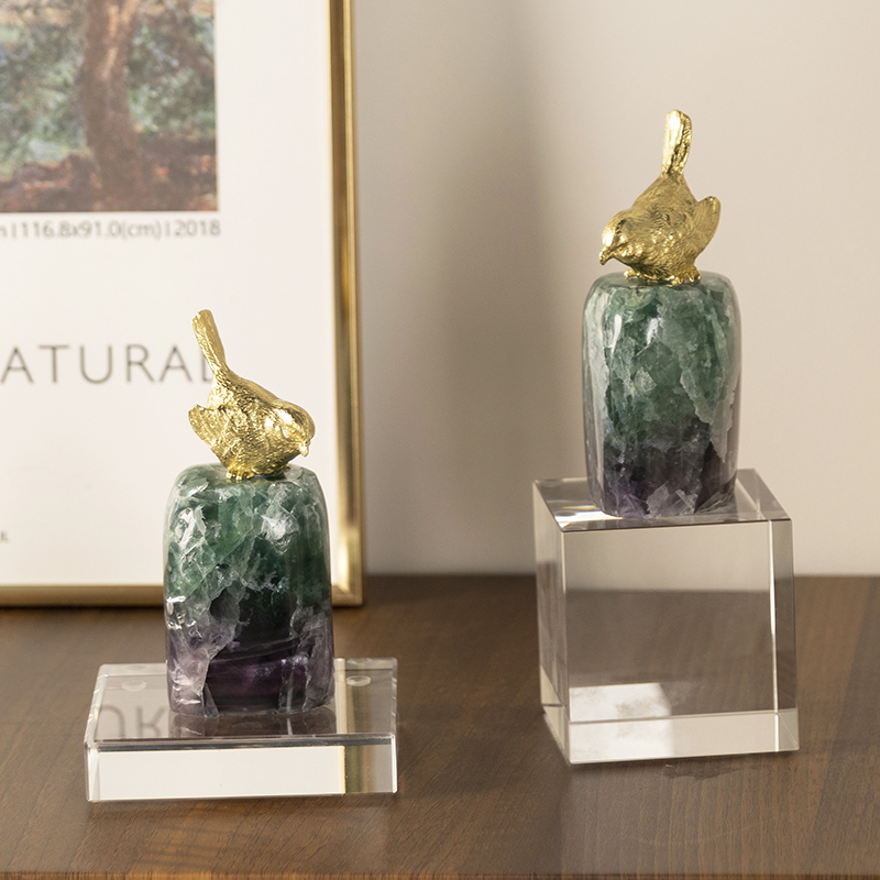 柏梵轻奢晶石黄铜喜鹊鸟摆件高档家居书房柜桌面摆设创意艺术摆件