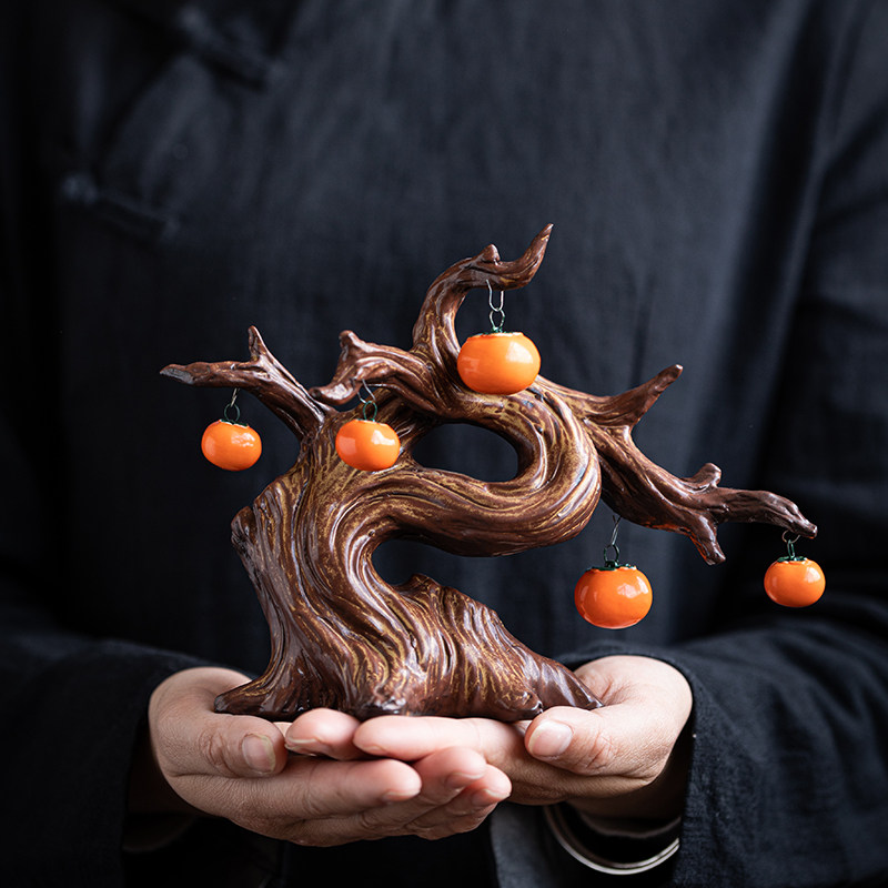 速发礼意陶瓷柿子摆件新中式柜迁新居送创品玄关酒柜电视乔禅意装