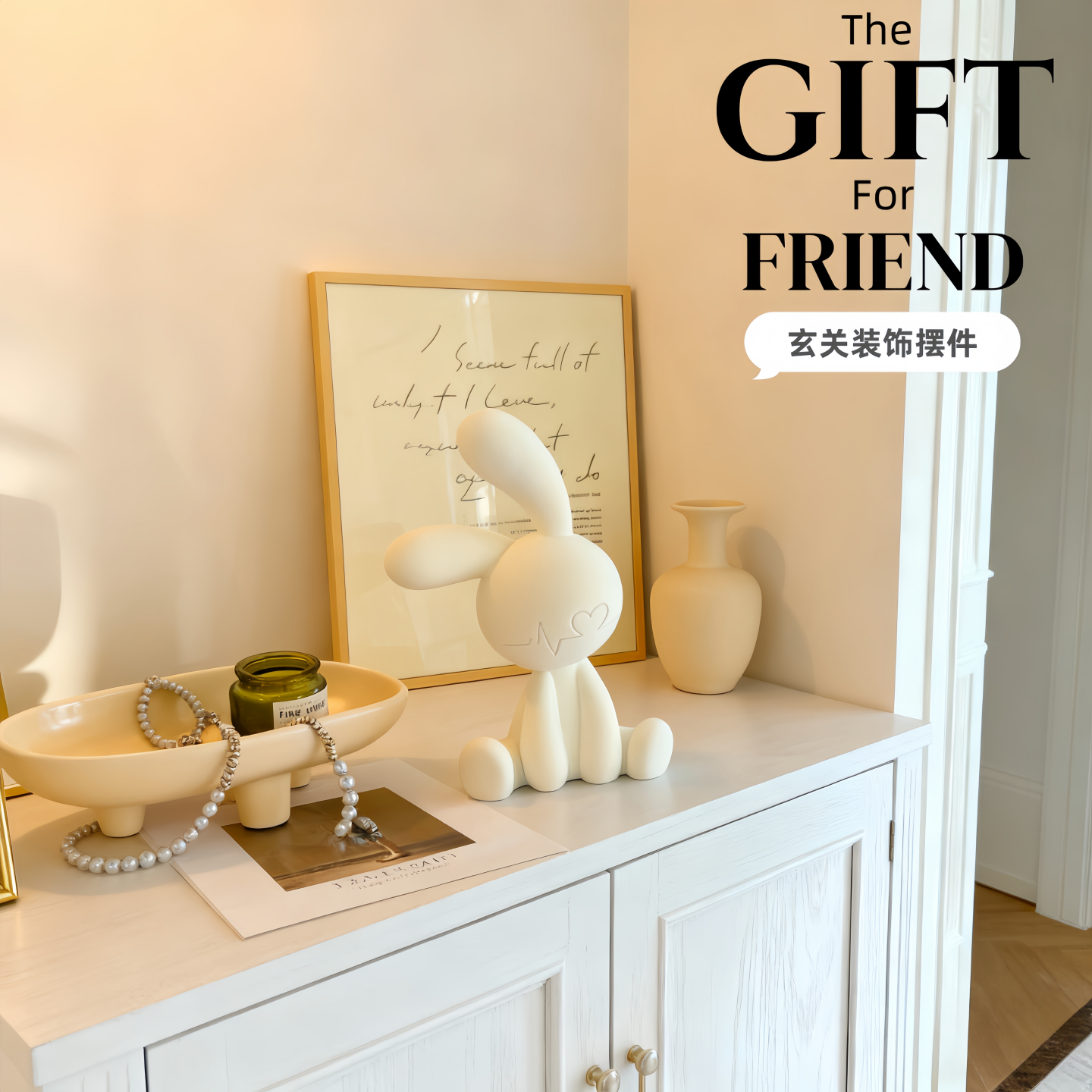奶油风坐姿兔子摆件高级感入户玄关酒柜客厅桌面创意轻奢家居装饰